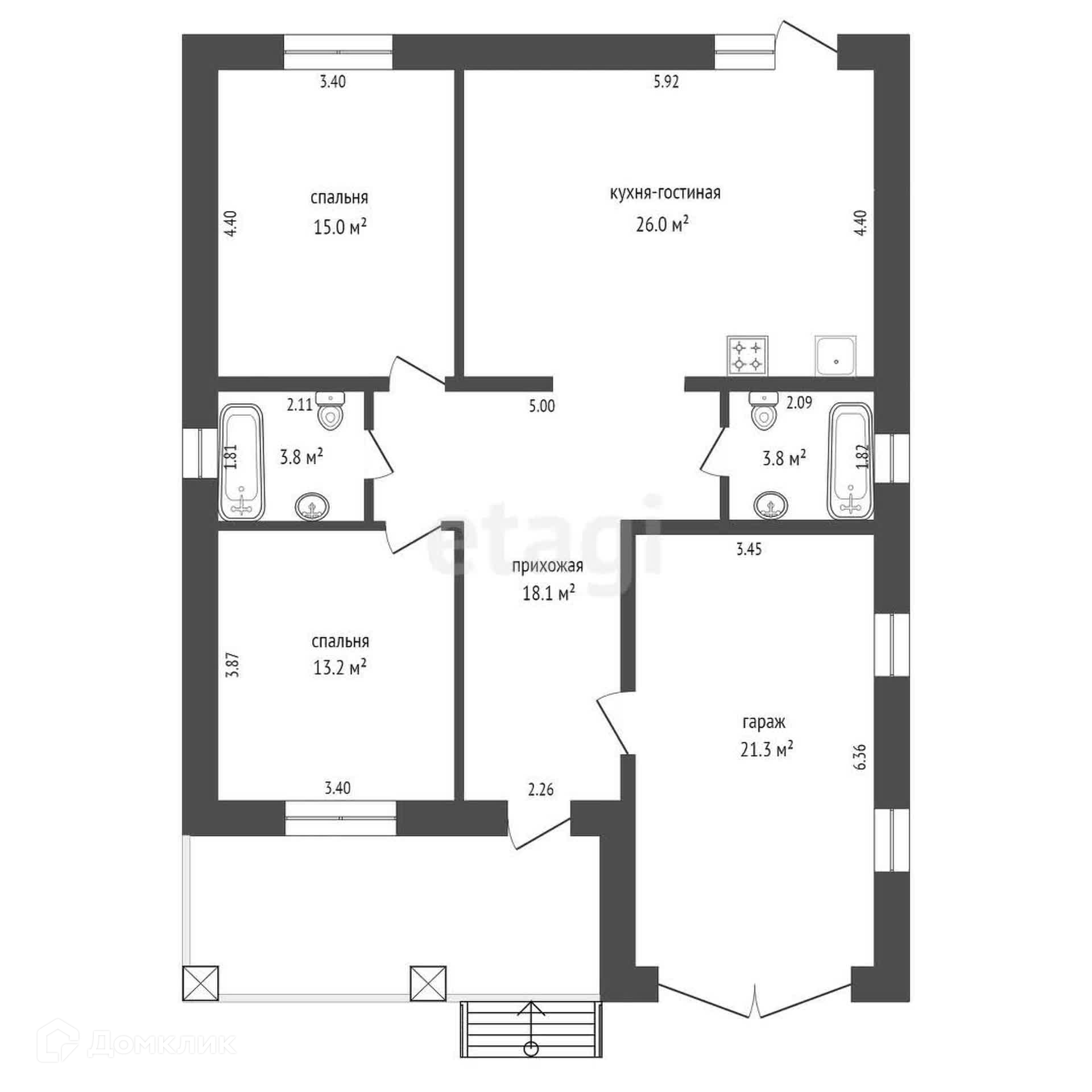 - Две спальных комнаты, 2 С/У, Кухня-гостиная, терраса, гараж для вашего автомобиля