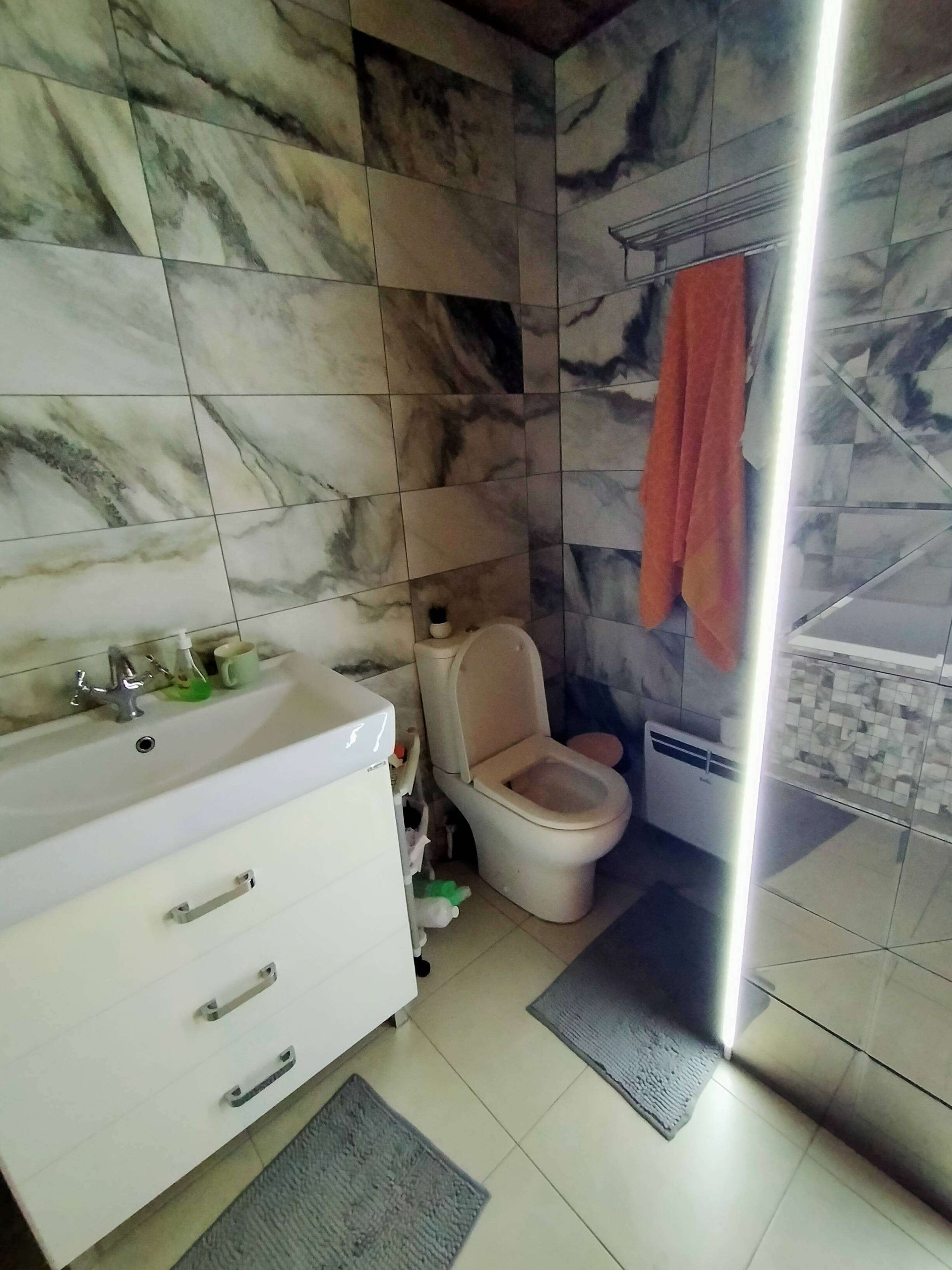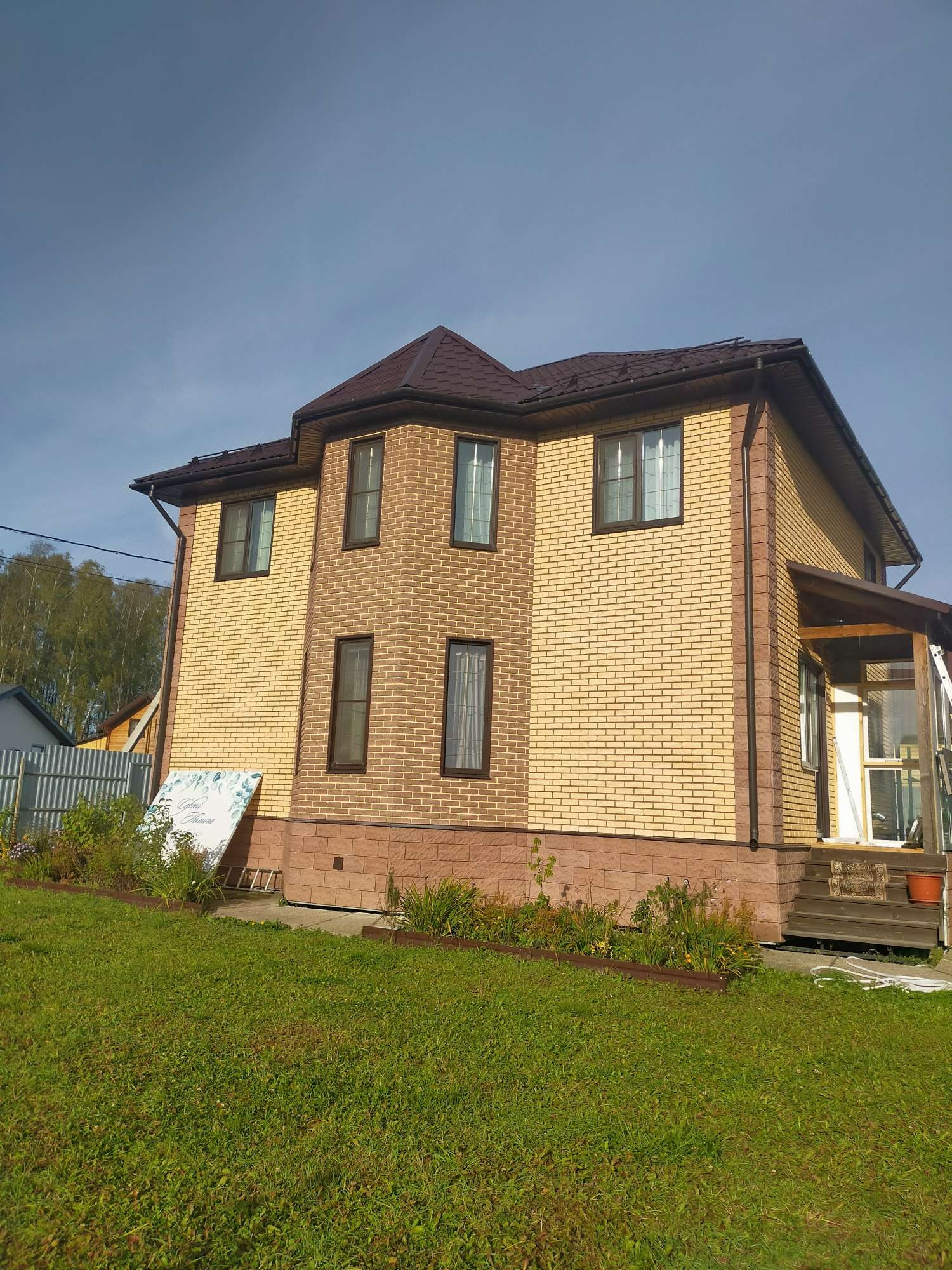 строился по проекту с учётом нормативов), с/у, кухня(13м2)-гостиная (23м2), одна изолированная комната 12м2. Второй этаж: три отдельные комнаты 17м2, 23м2, 14м2, большой с/у с сауной. Есть кондиционер, колонка и водонагреватель. Кухонный гарнитур остается, мебель по договоренности. Фундамент - 48 свай, стены - сип панели, снаружи отделан клинкерныии кирпичиками, дом теплый, живём с 2017 года постоянно, никто не прописан, но прописка открыта. Свет - 15 КВ, центральная вода и канализация.