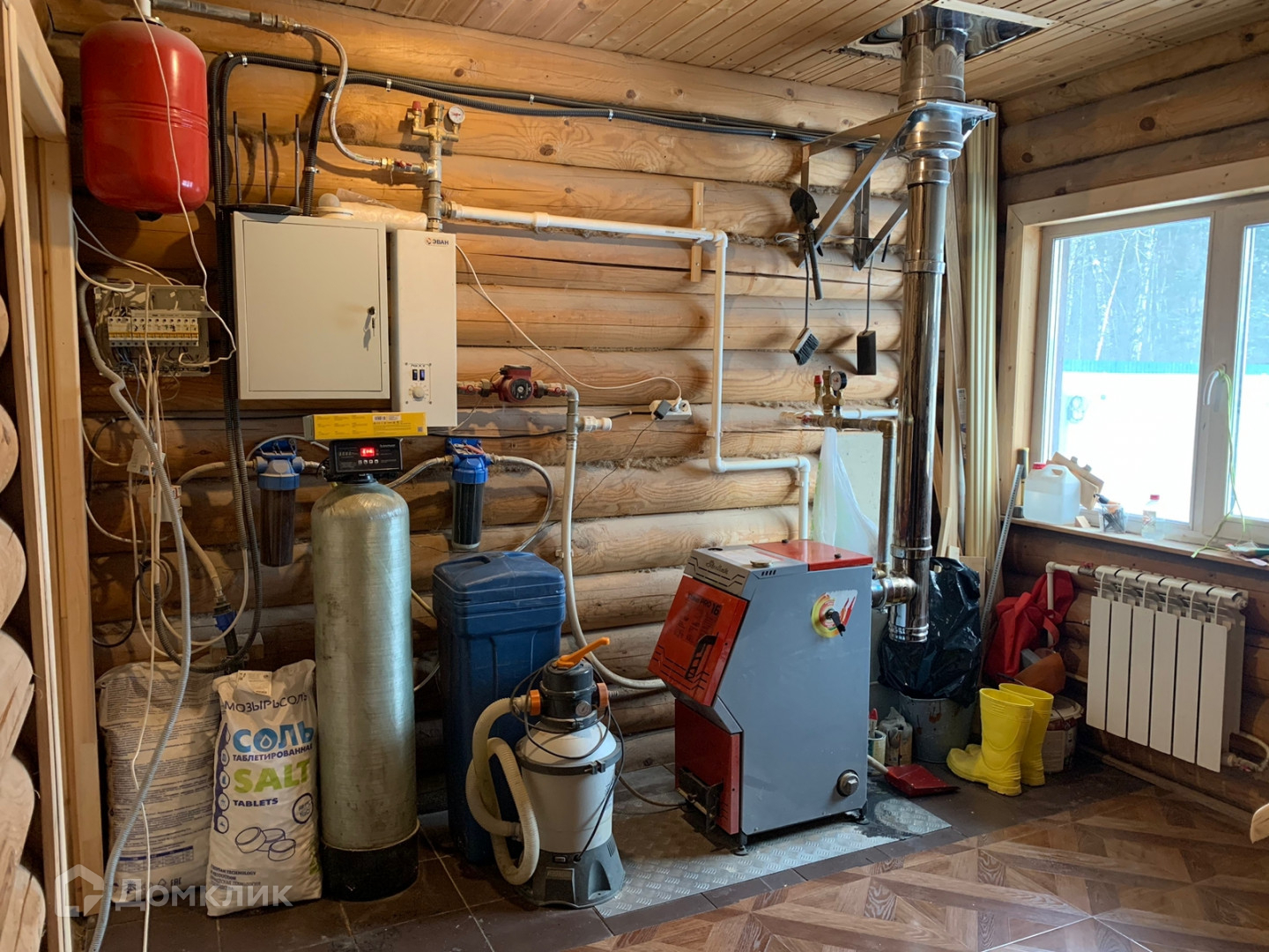 Вокруг дома забетонированная площадка, с местом для паркинга на 4 авто и площадка под бассейн. В основной и гостевой дом подведены все необходимые коммуникации. Вода из своей скважины. Установлена система очистки и фильтрации. Для отопления используется дровяной и электрический котлы. Электричество 15 кВт, 220-380 В.