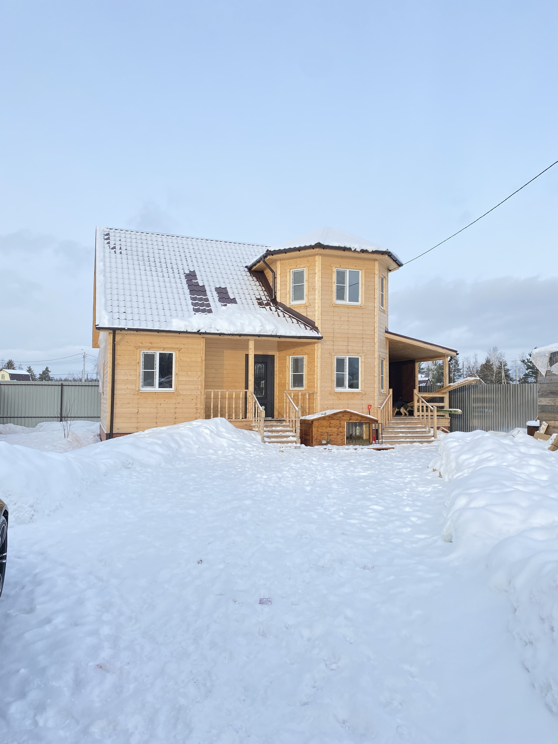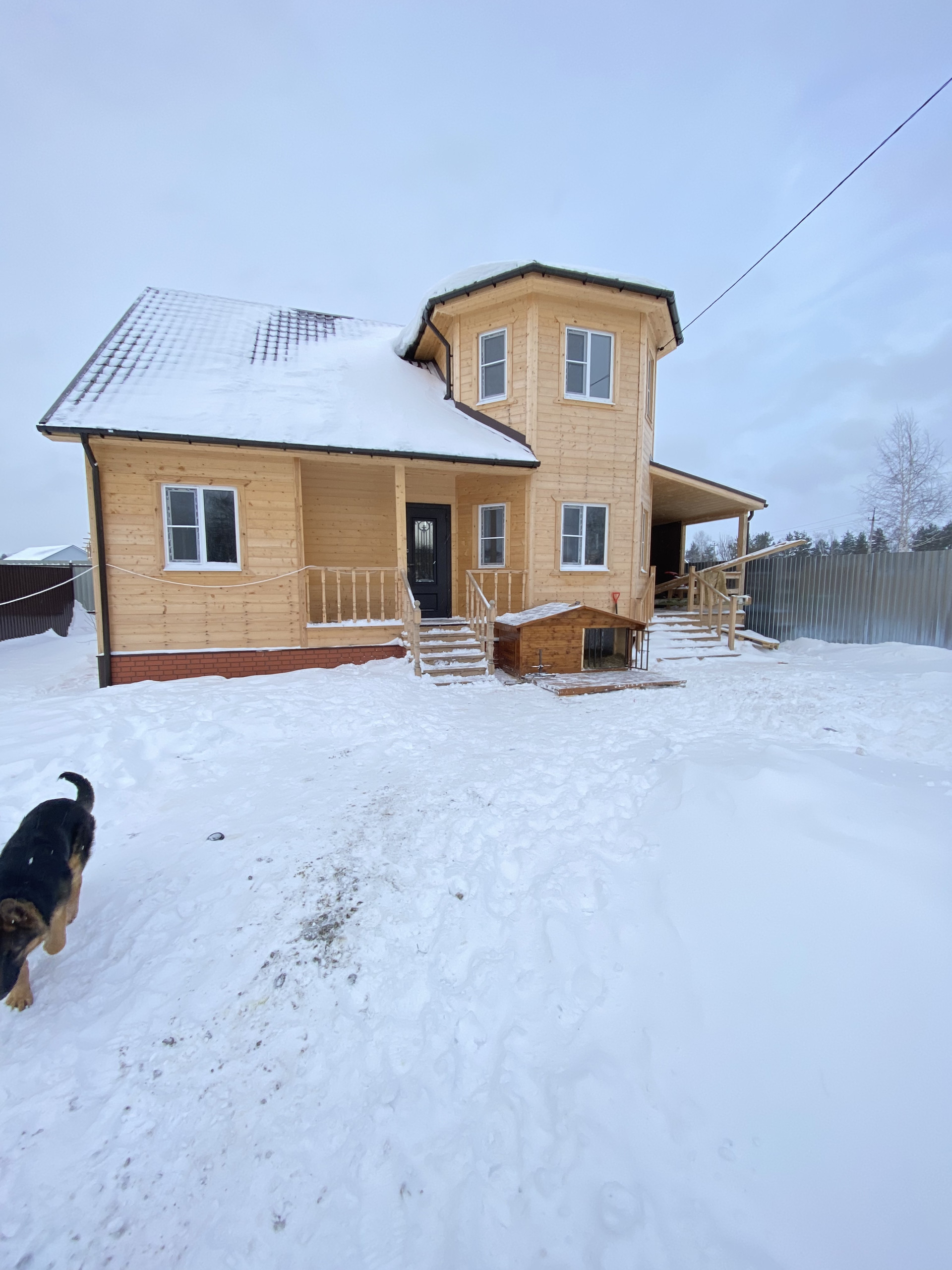 В доме: Винтовая открытая лестница на второй этаж. Высота Потолков первый этаж 2,7; второй -2,6м.