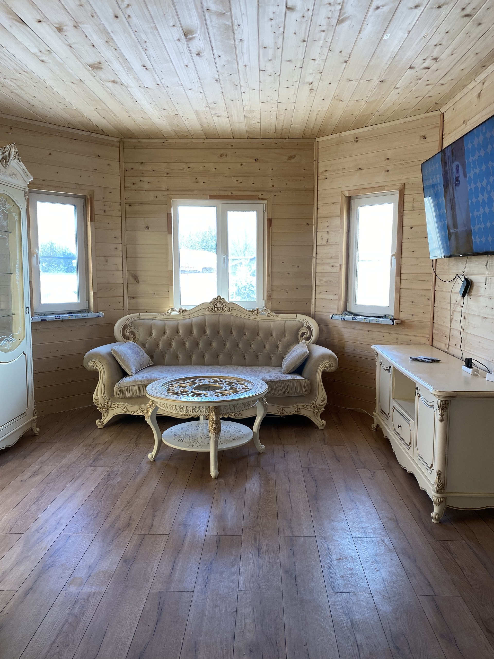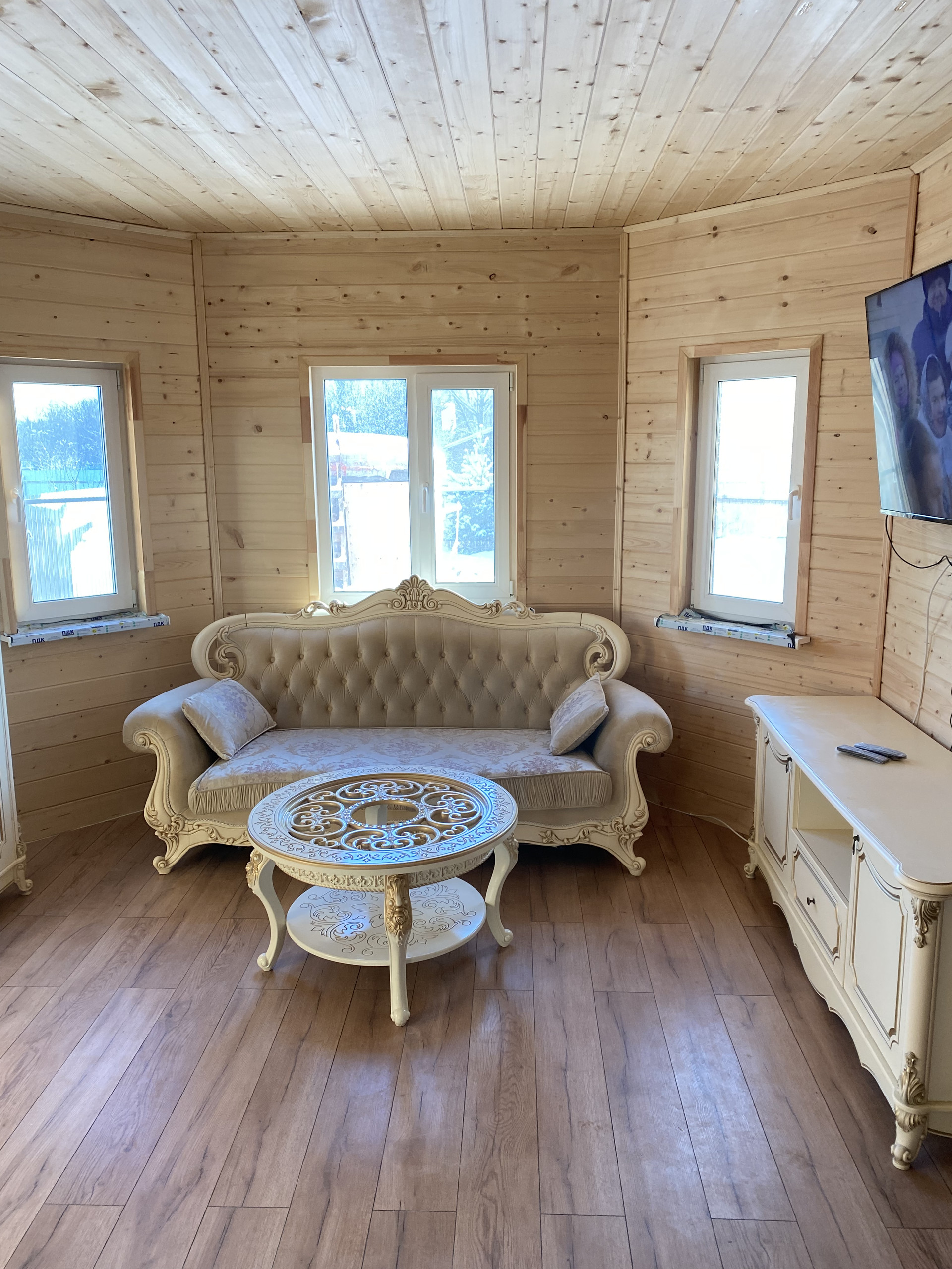 Кухня-гостиная 32кв.м, прихожая с гардеробной, ванная комната -8кв.м, гостевая комната 16кв.м