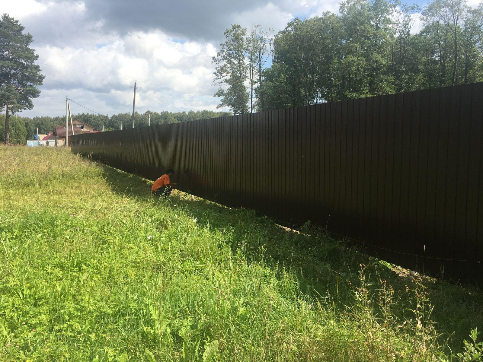 Поселок под охраной , вьезд через откатные ворота .