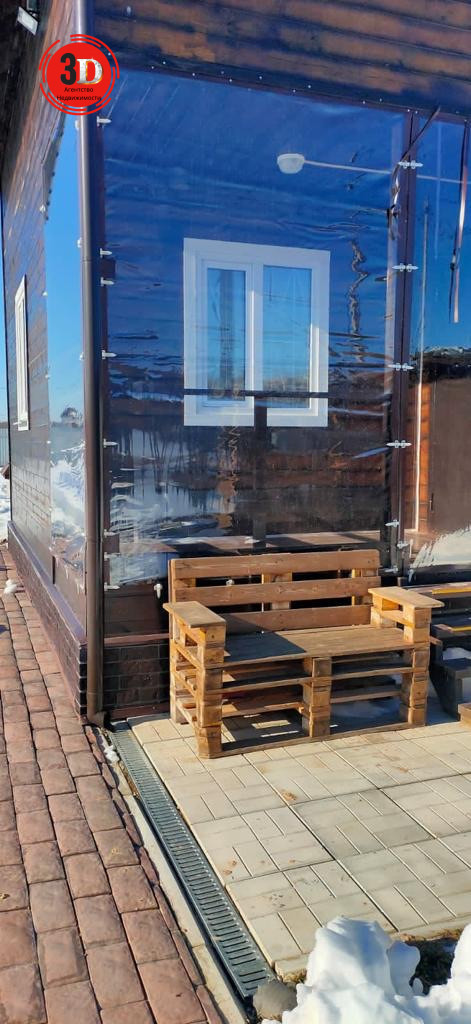 На участке тротуарная плитка, под которой имеется дренажная система для отведения воды во время таяния снега и сильных дождей.