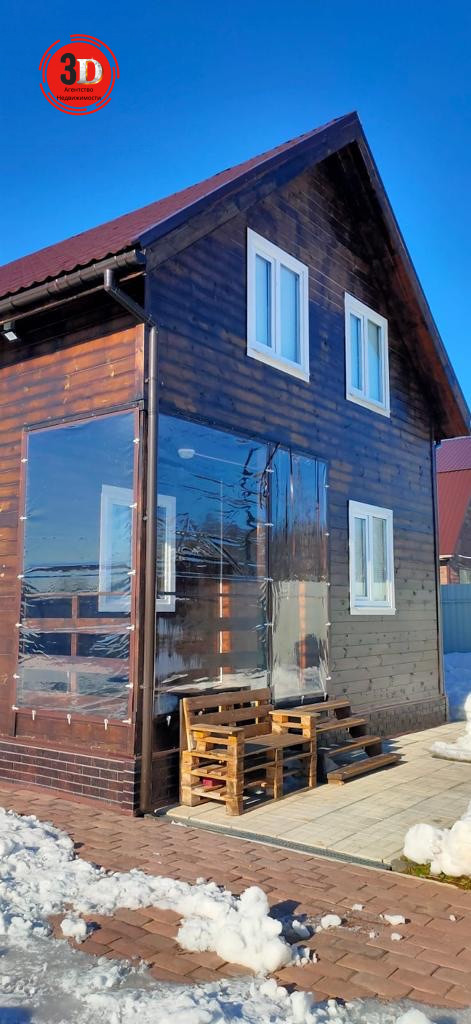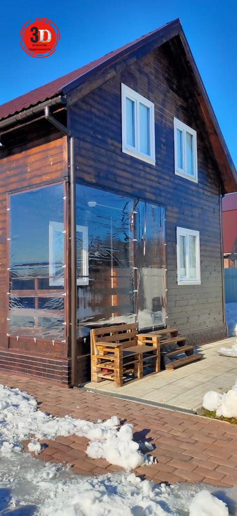 Дом двухэтажный, 2020 года постройки, площадь 72 м². Пол дома полностью с улицы отделан сеткой от грызунов. Крыша утеплена, из оцинкованной металлочерепицы, сделаны отливы. Дом каркасный из дерева сосны, при строительстве полностью обработан несмываемым антисептиком. Внешние стены обработаны Пенотекс (10 лет). Толщина стен 200 мм. Стены, пол, перегородки утеплены теплоизоляционным материалом URSА. Окна пластиковые, входная дверь металлическая, межкомнатные двери деревянные. На всех окнах первого этажа установлены решетки. Кухонный гарнитур из IКЕА. На веранде есть съёмные мягкие окна. Двор и веранда освещаются.
