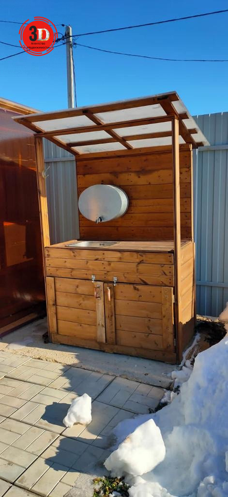 Имеется колодец с питьевой водой 10 колец. Есть летний душ (металлический профиль, поликарбонат, бак для воды на 200 литров). Также рукомойник (деревянный, поликарбонат).