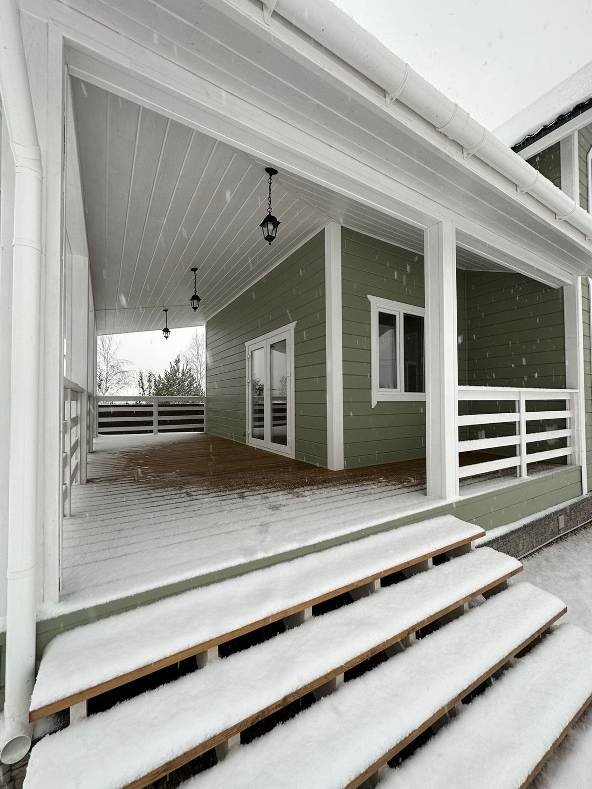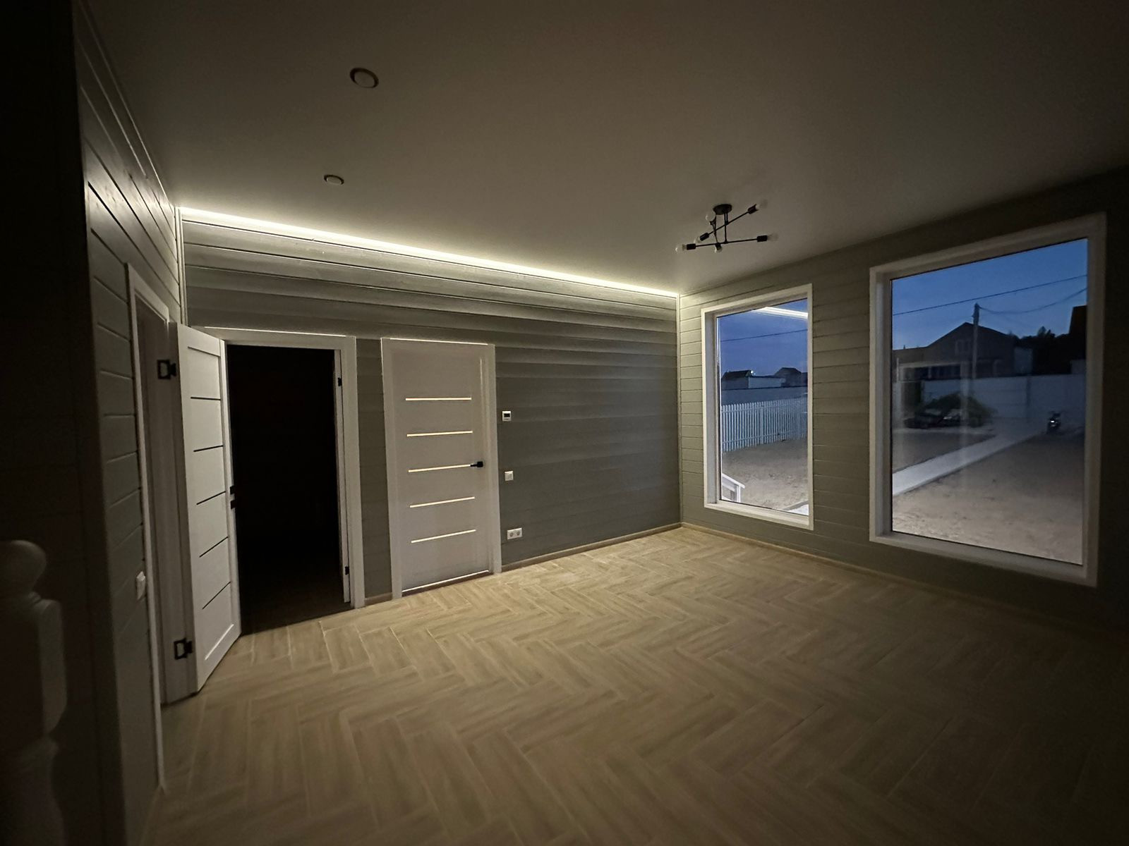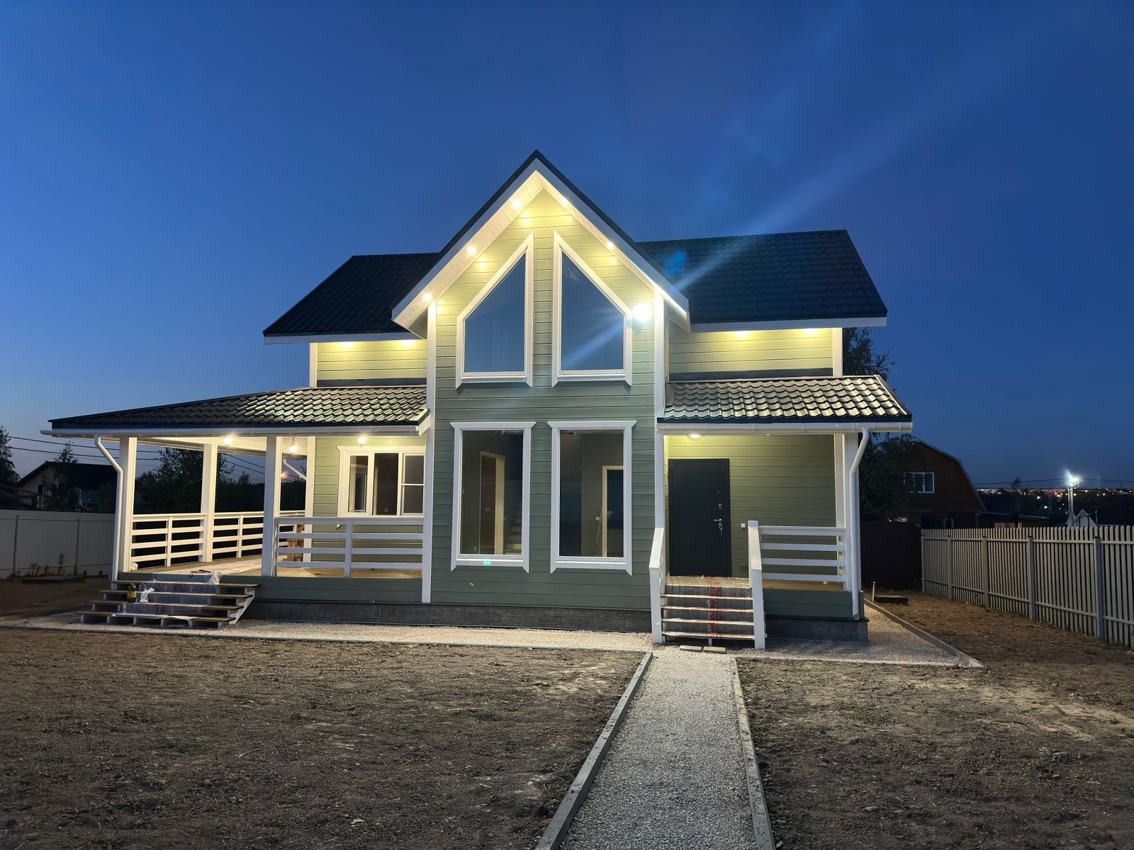 По всему первому этажу дома проходит теплый пол с плиткой, второй этаж отапливается регулируемыми кварцевыми