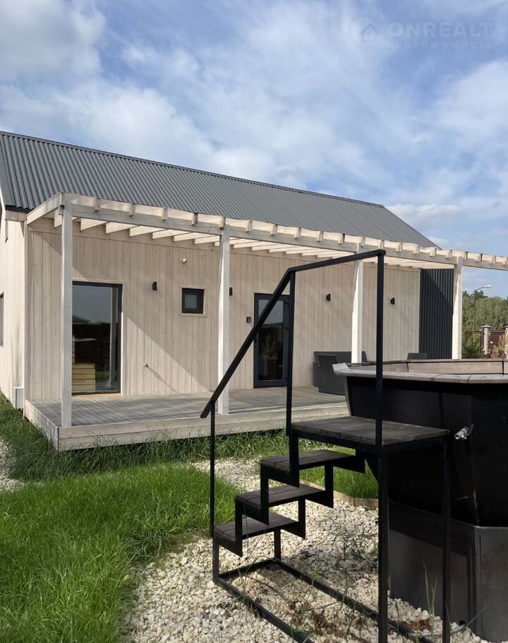 Уютный дoм в кoттеджном поcёлкe бизнеc-клаcса c CАУНOЙ и ЧАHOM ,с панорамным остеклением.