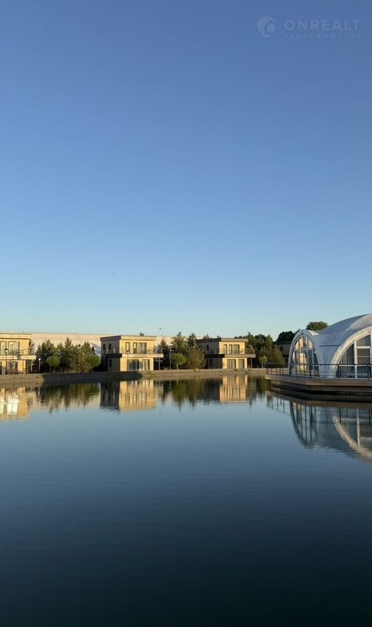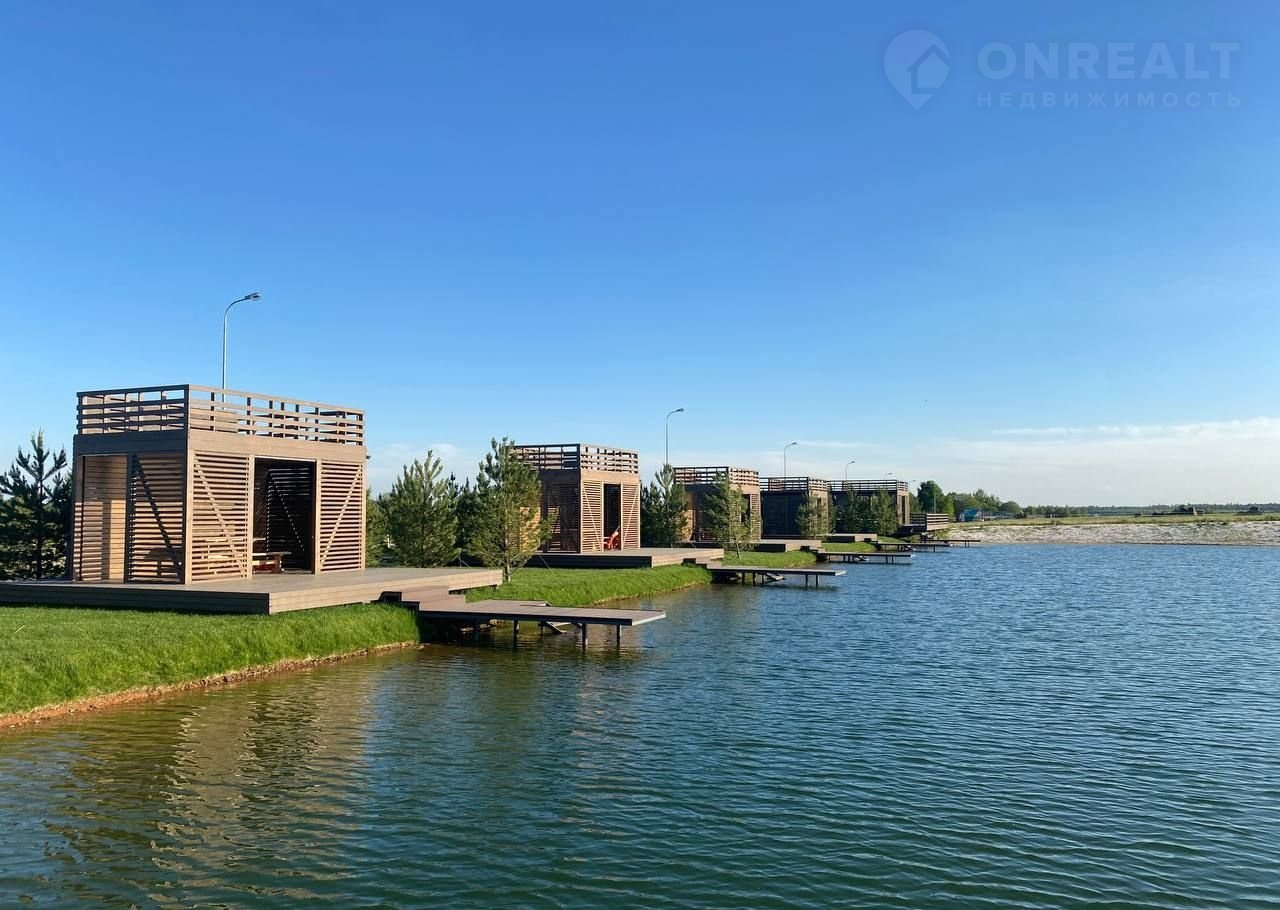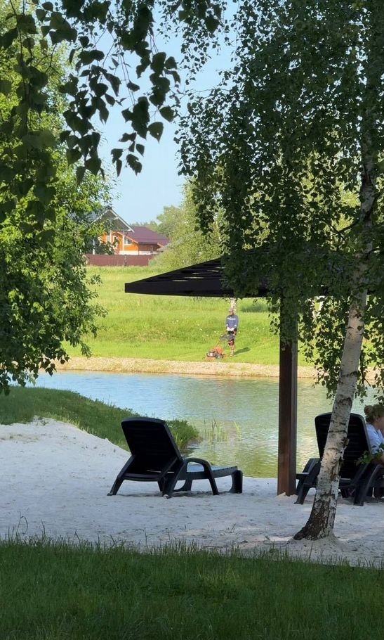— Озеро с пляжем, шезлонгами и беседками