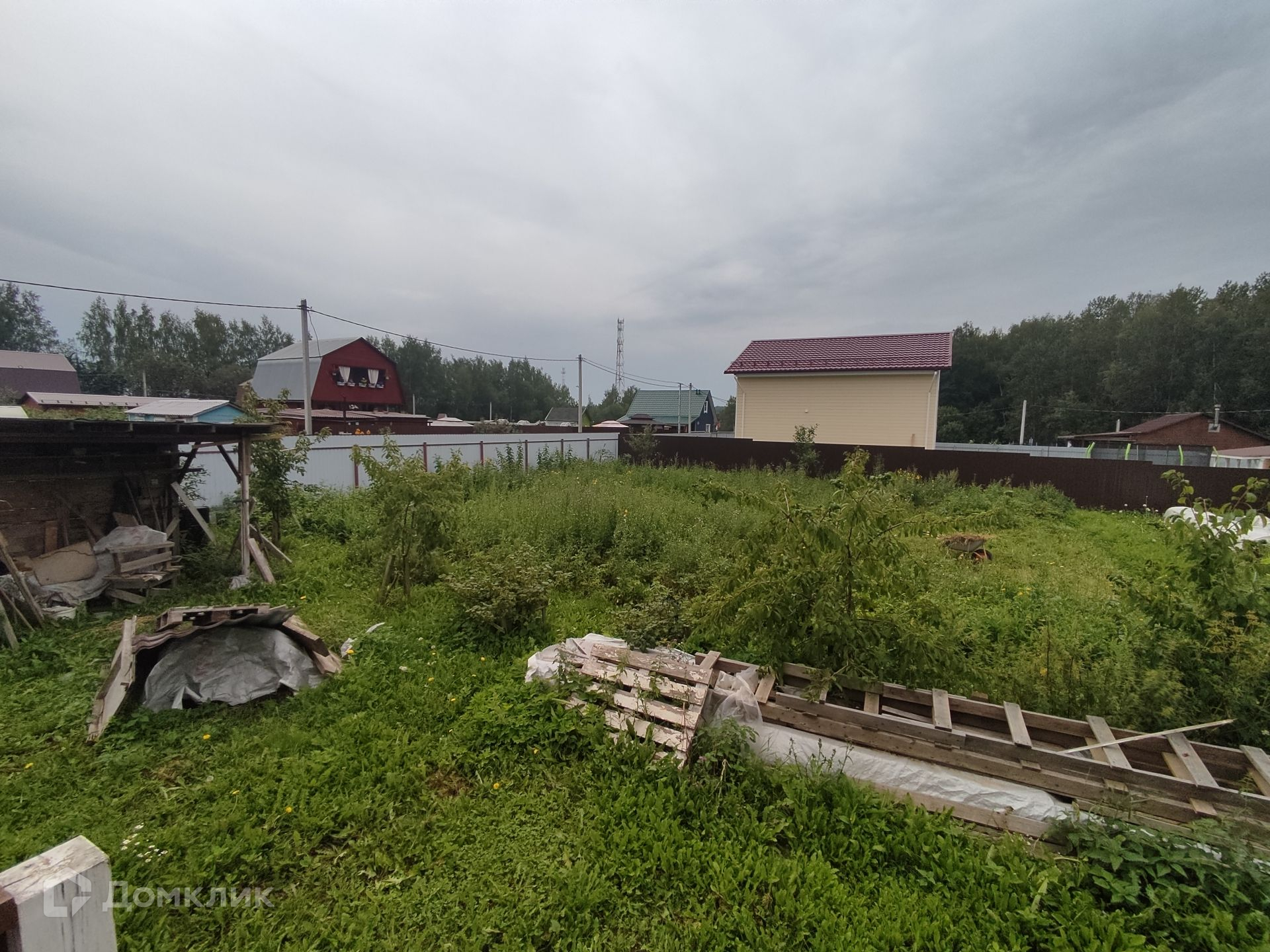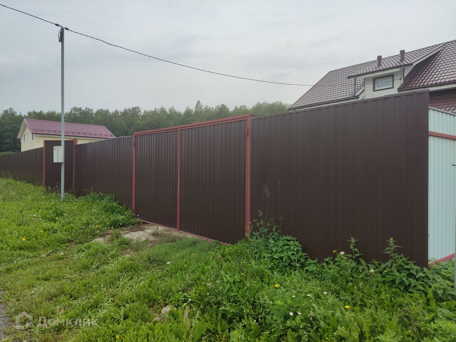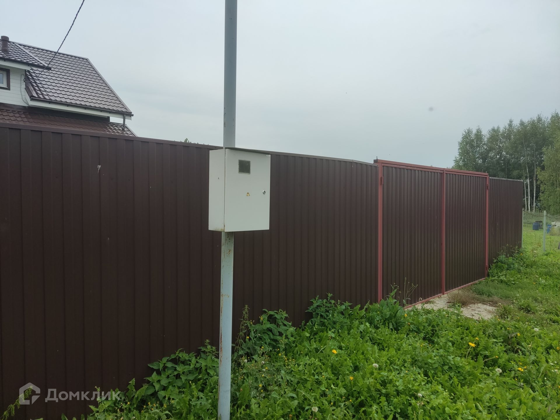 Участок 12 соток, правильной прямоугольной формы, огорожен забором с калиткой из профлиста.
