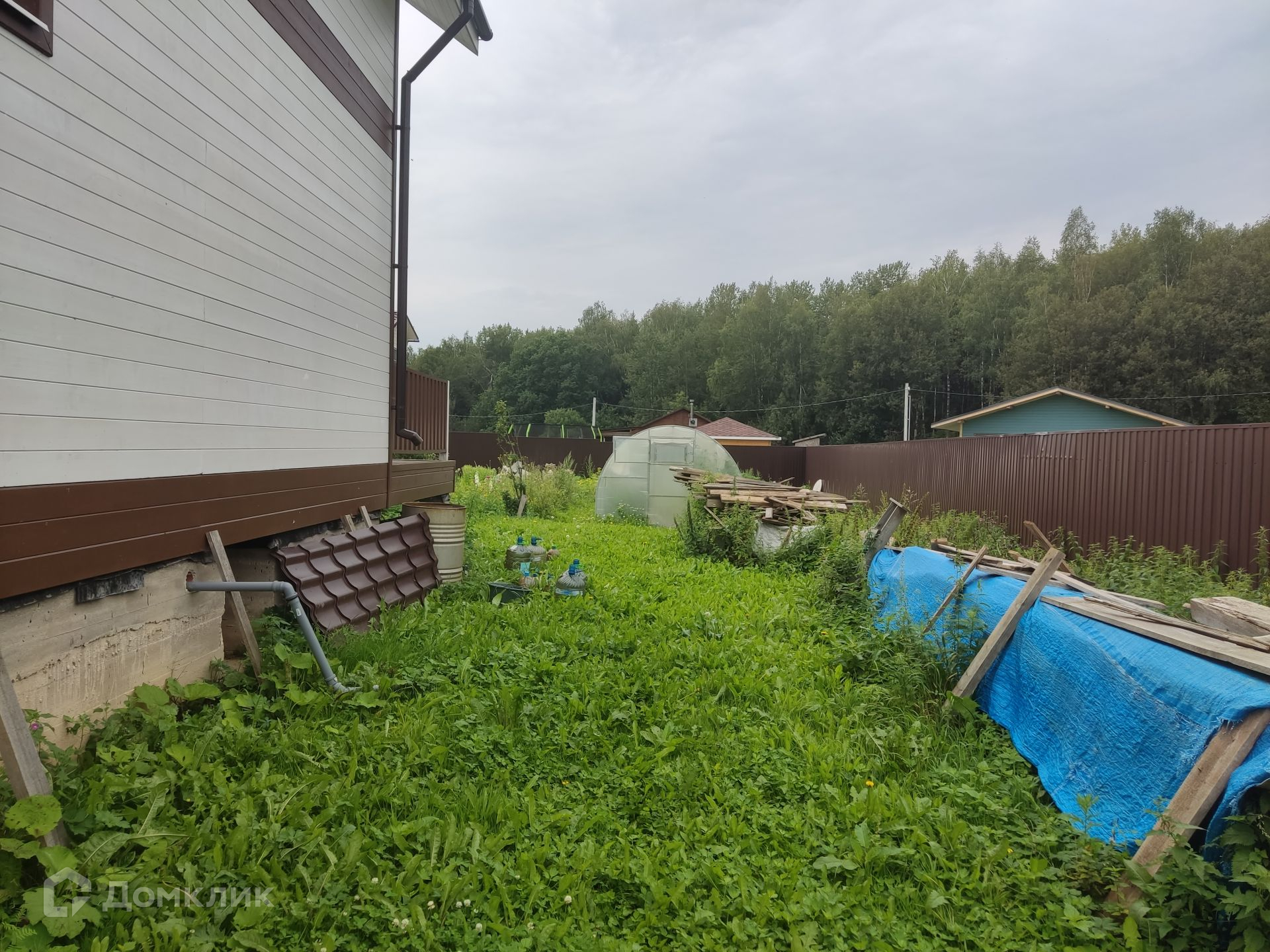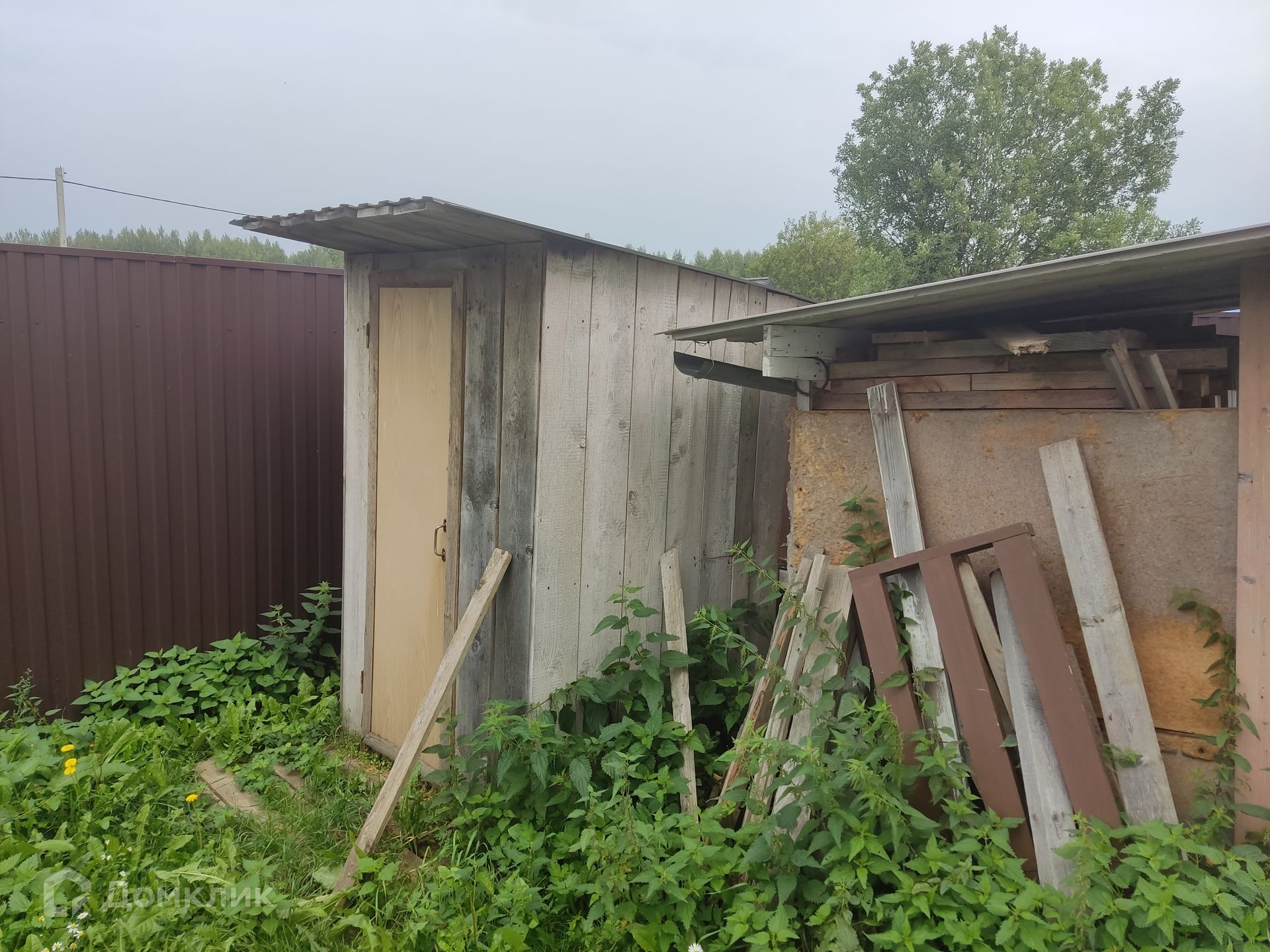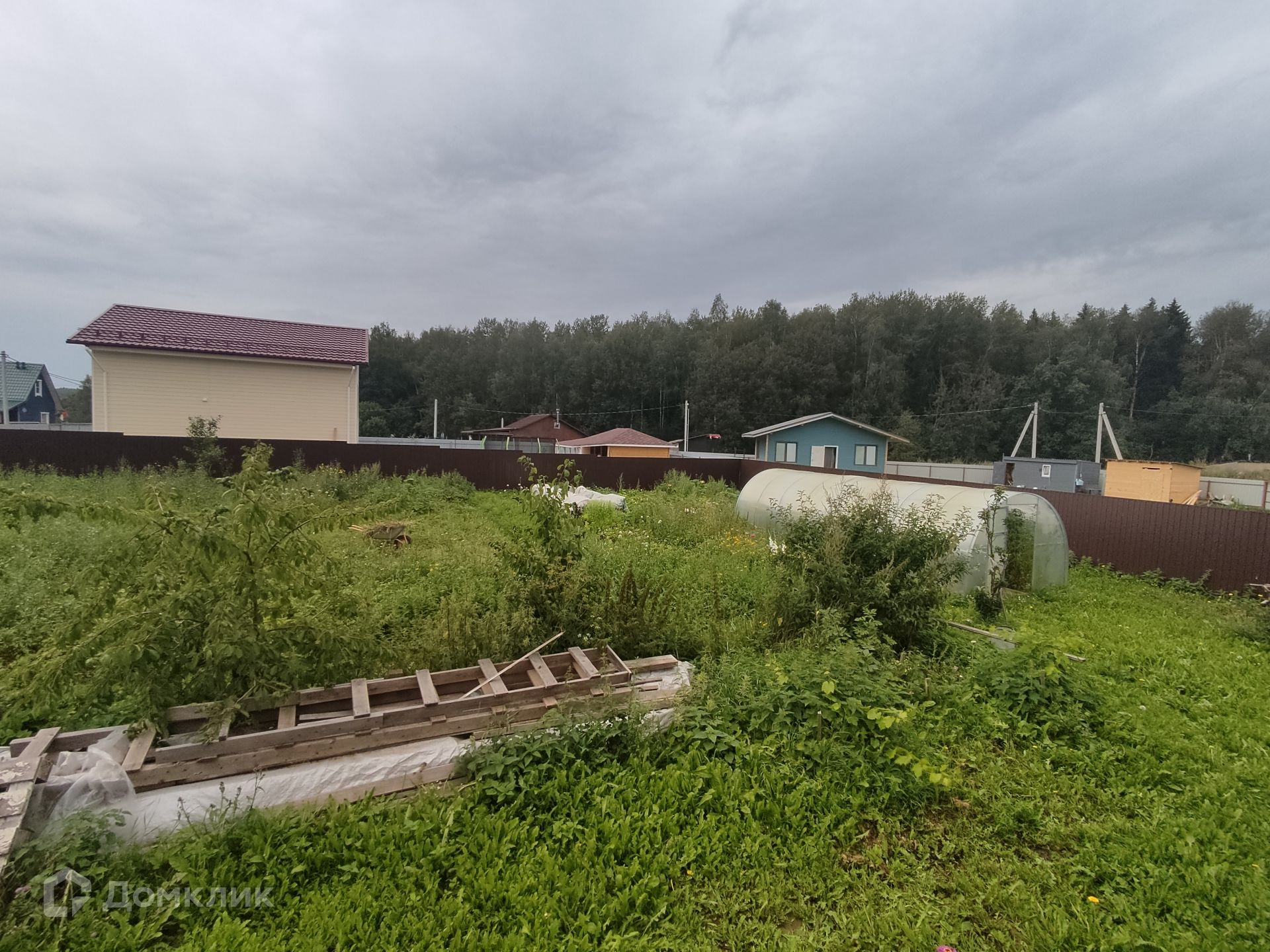 Участок 12 соток, правильной прямоугольной формы, огорожен забором с калиткой из профлиста.