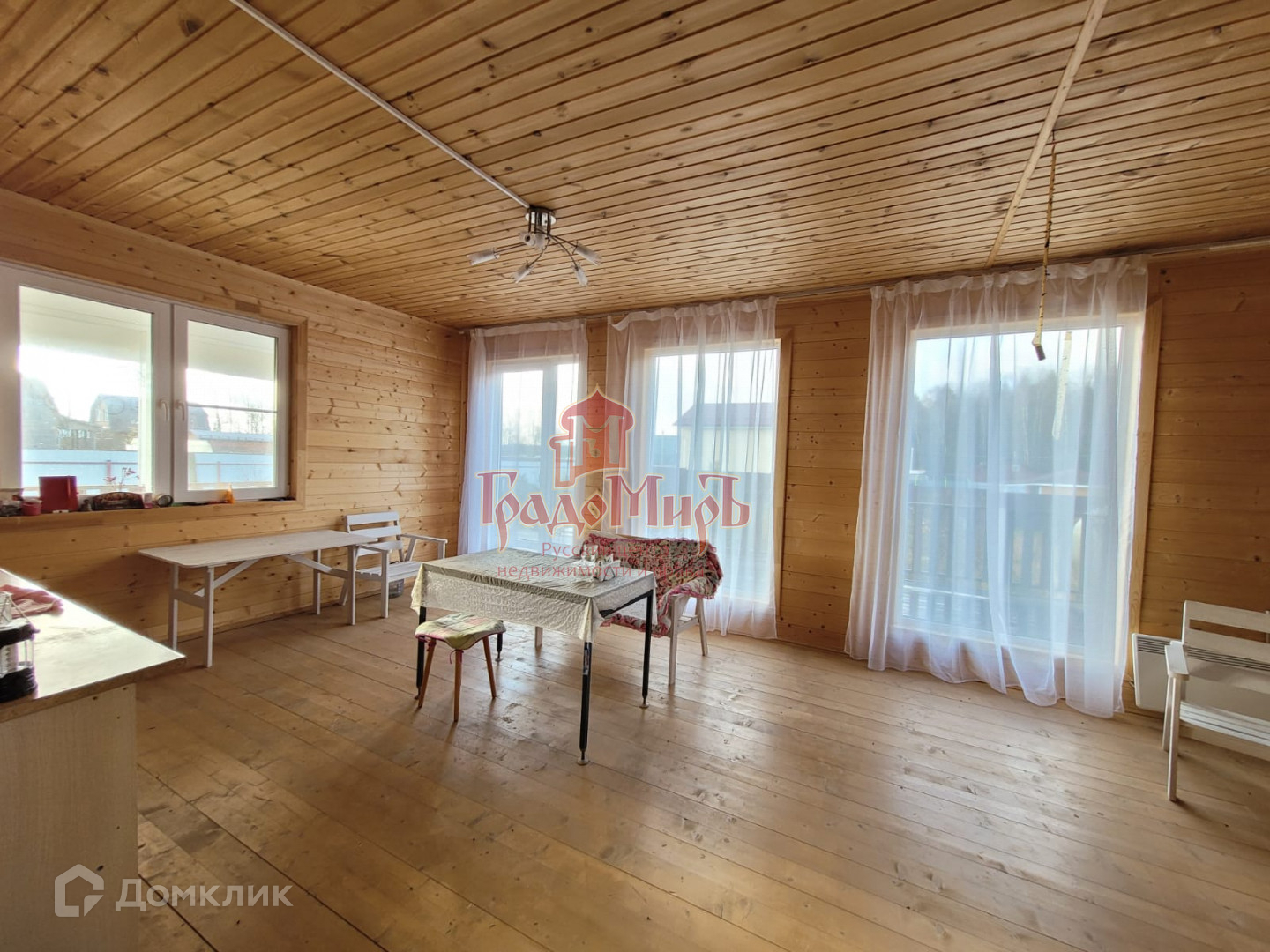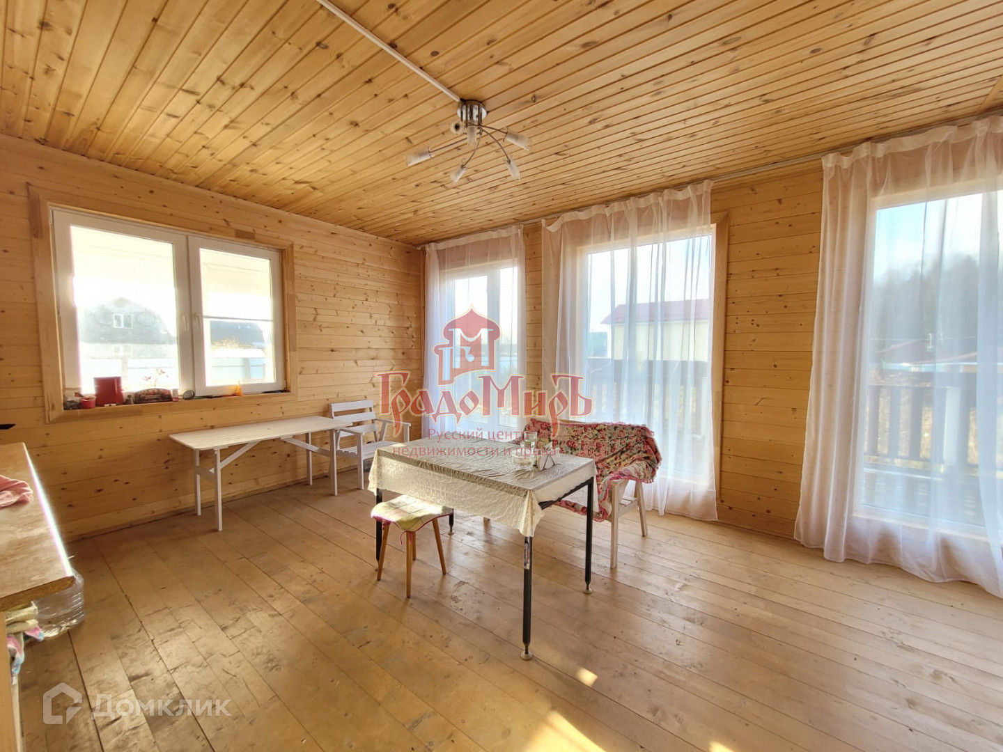Окна ПВХ - с двойным стеклопакетом. Крыша - металлочерепица с установленной водосливной системой. Стены и потолки - имитация бруса.