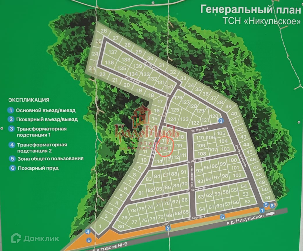 Подъезд к участку возможен в любое время года. Практически до самого участка асфальтная дорога. Посёлок просматривается видеокамерами, территория огорожена, на въезде автоматические ворота.