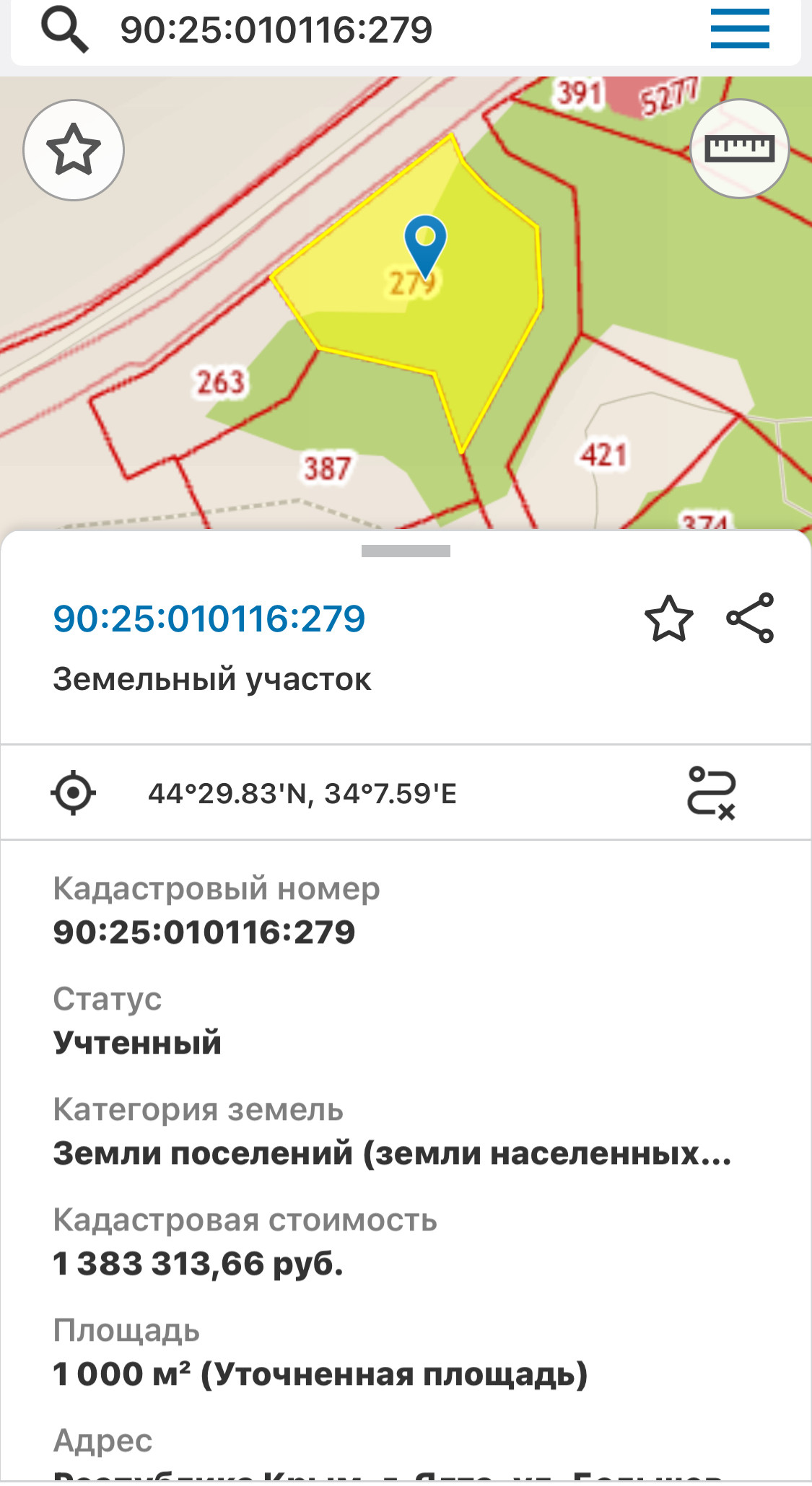 Кадастровый номер: 90:25:010116:279