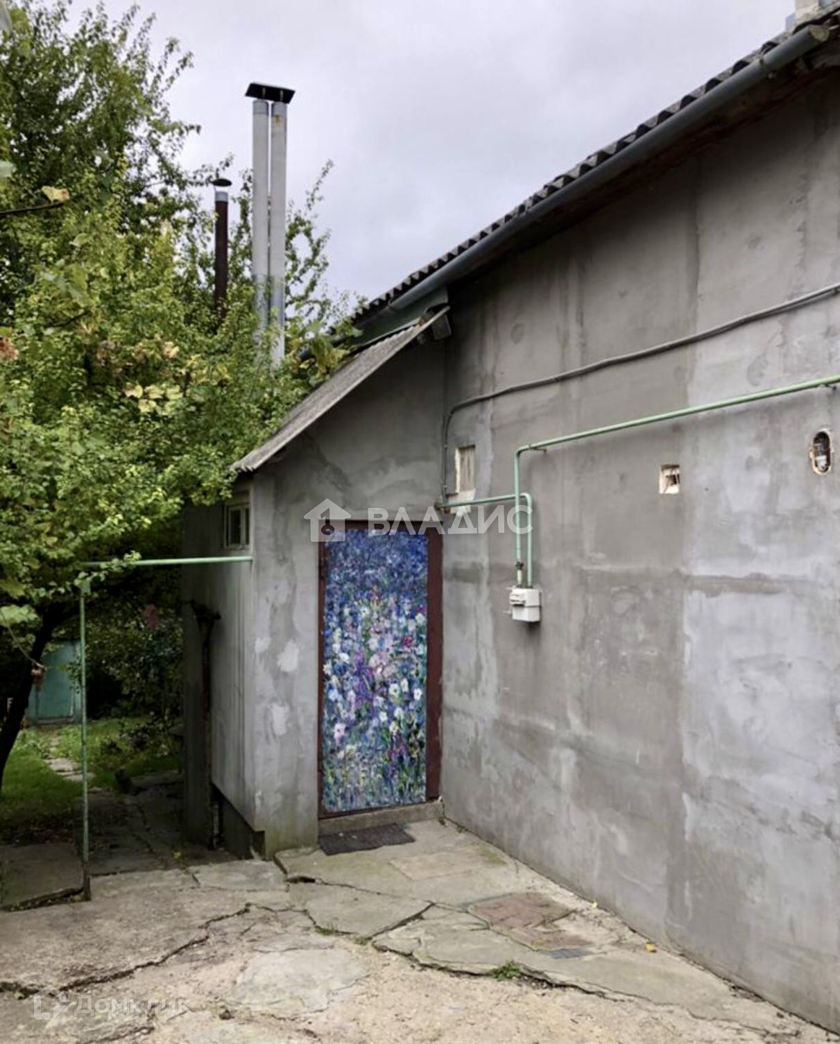 На территории расположена беседка, металлический вагончик с баком для воды на крыше.