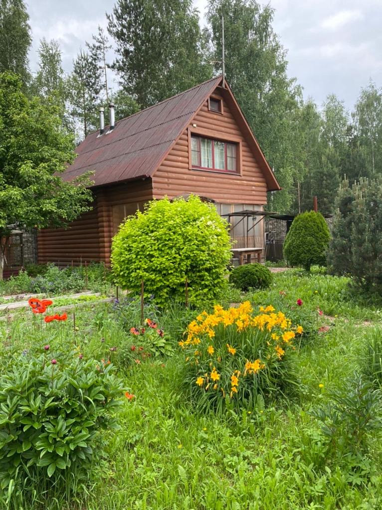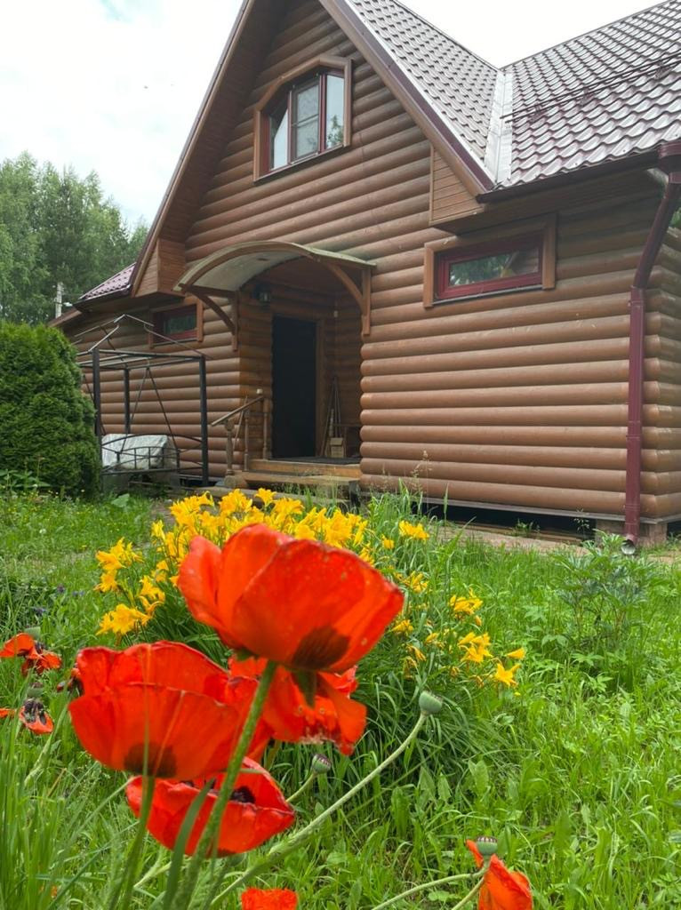 Дом 105 кв.м. - сруб, обшит блокхаусом, на первом этаже кухня- гостиная, на втором три спальни и кабинет, два санузла