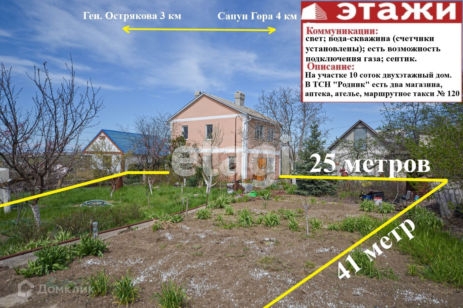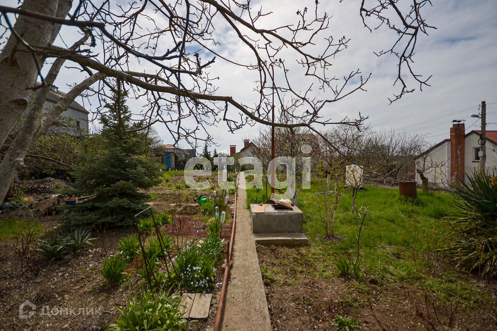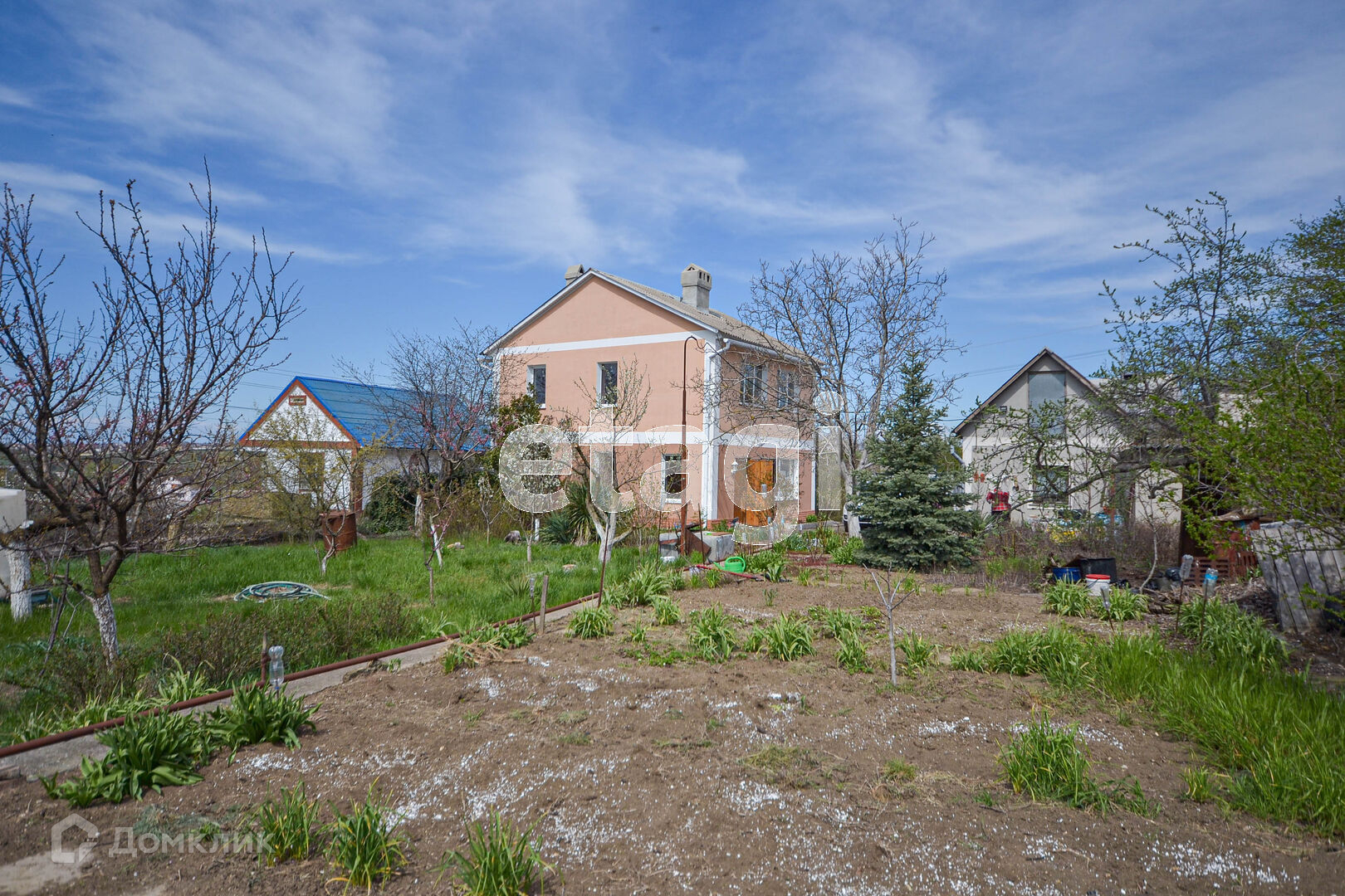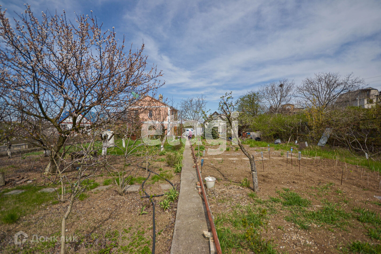 Участок огорожен каменным забором, ухоженный сад и огород: вишня, черешня, яблоня, груша, хурма, королек, слива, кизил, калина, персик, малина, клубника, абрикос, смородина.
