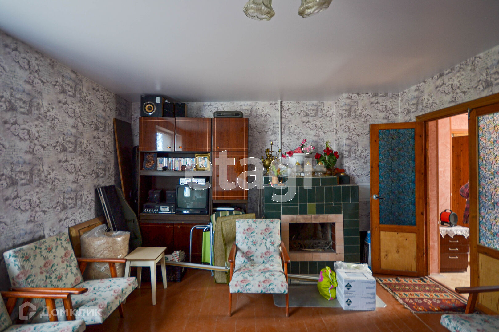 В доме на 1-ом этаже: коридор, кухня, гостиная с камином.