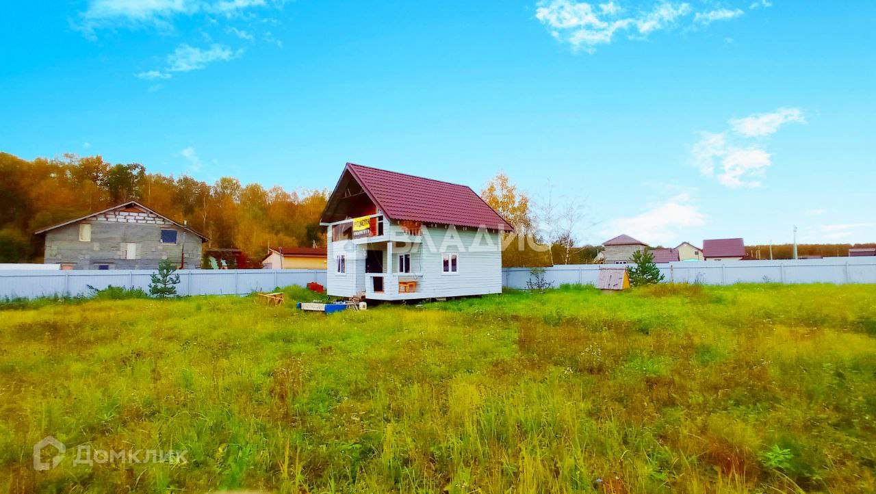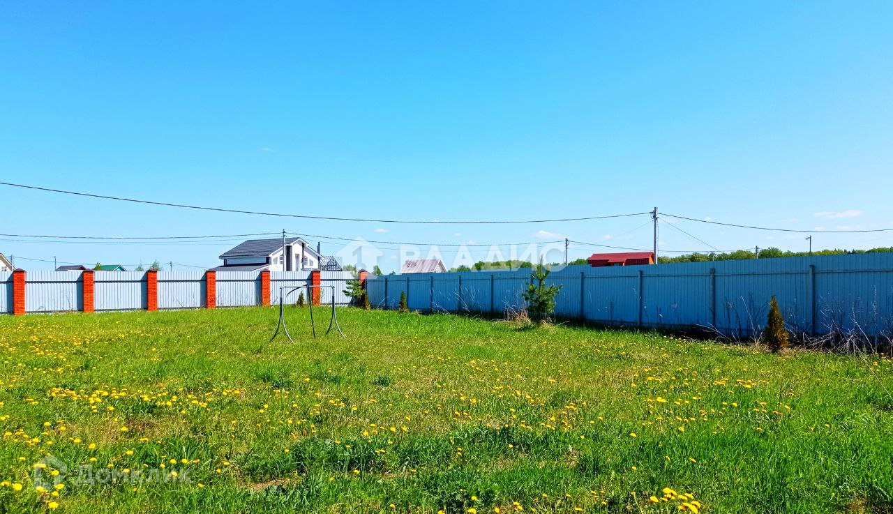 Ровный участок 13,15 соток, правильной формы, забор из профнастила, столбы кирпичные. Ворота, две калитки. Перед участком вдоль всего фасада забора просторная площадка шириной 15 метров (возможна парковка или зона отдыха).