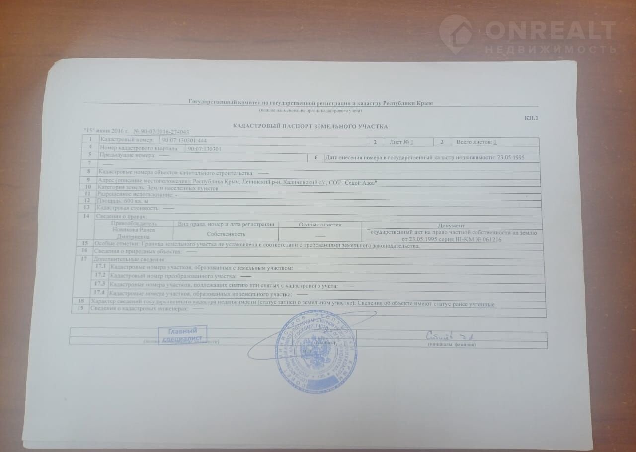 Продаю земельный участок на берегу азовского моря, село Семеновка СОТ "Седой Азов". Участок правильной формы.  Свет по границе участка. Собственность РФ. Все вопросы по телефону. Кадастровый номер: 90:07:130301:444
