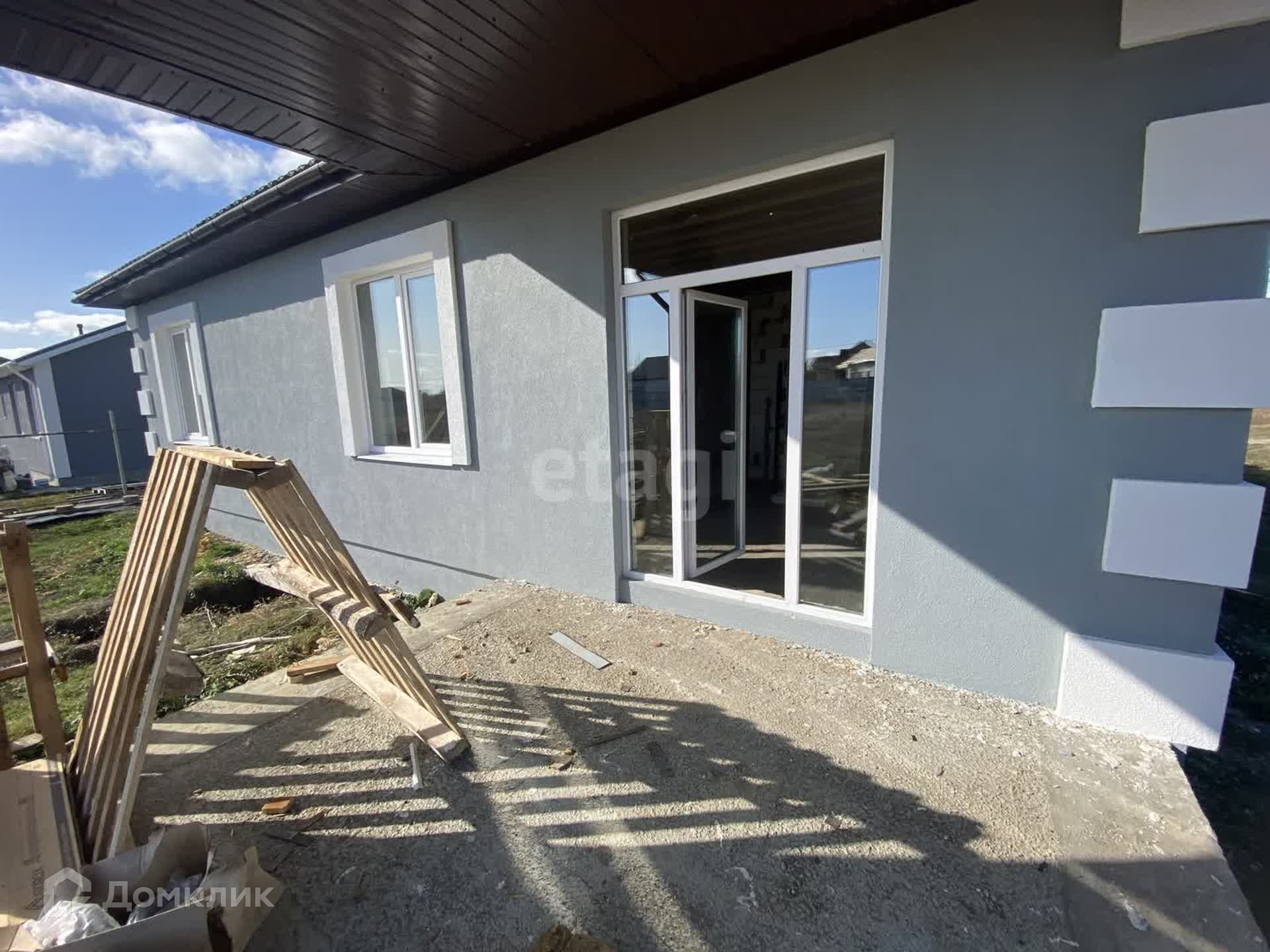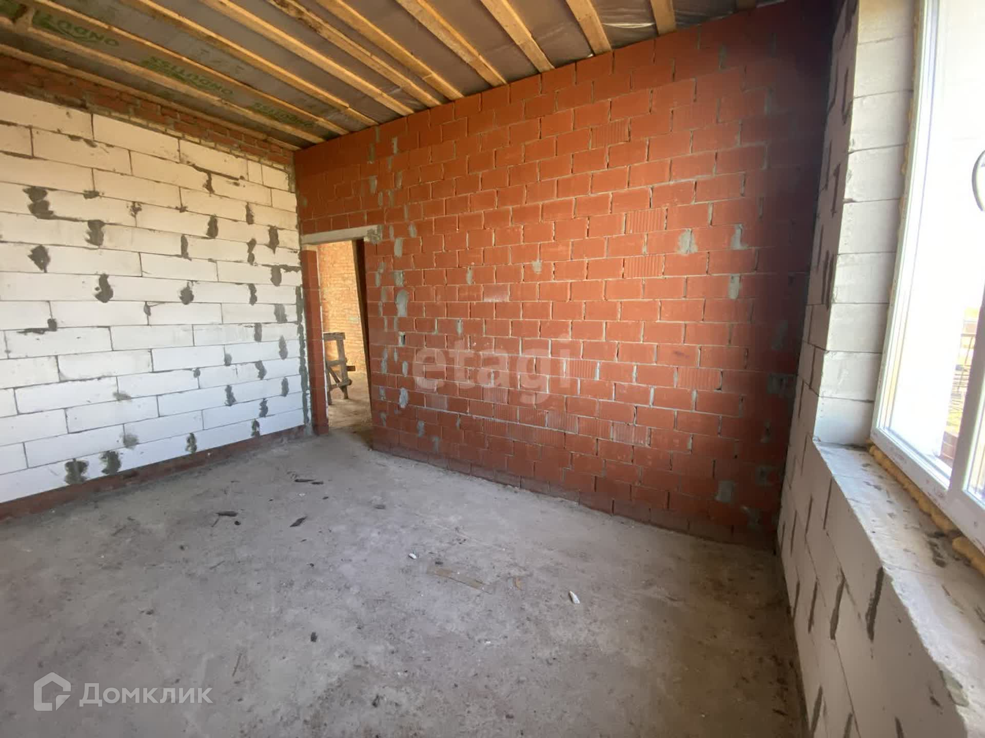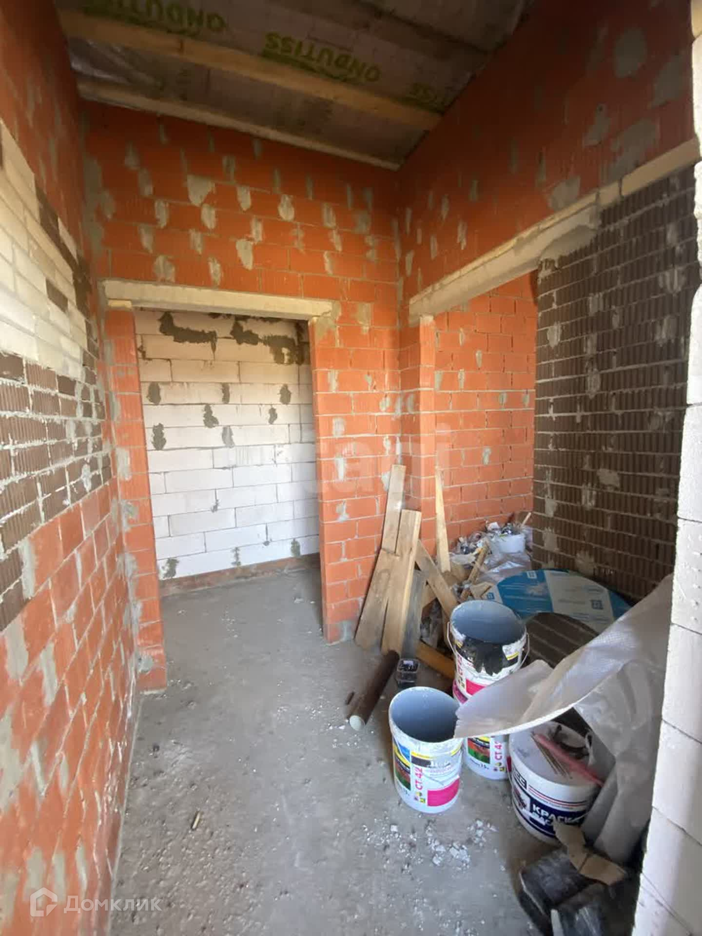 Стены дома из газосиликатных блоков снаружи утеплены пенопластом, оштукатурены и окрашены (технология мокрый фасад). Крыша с деревянными перекрытиями, утепленными по потолку.