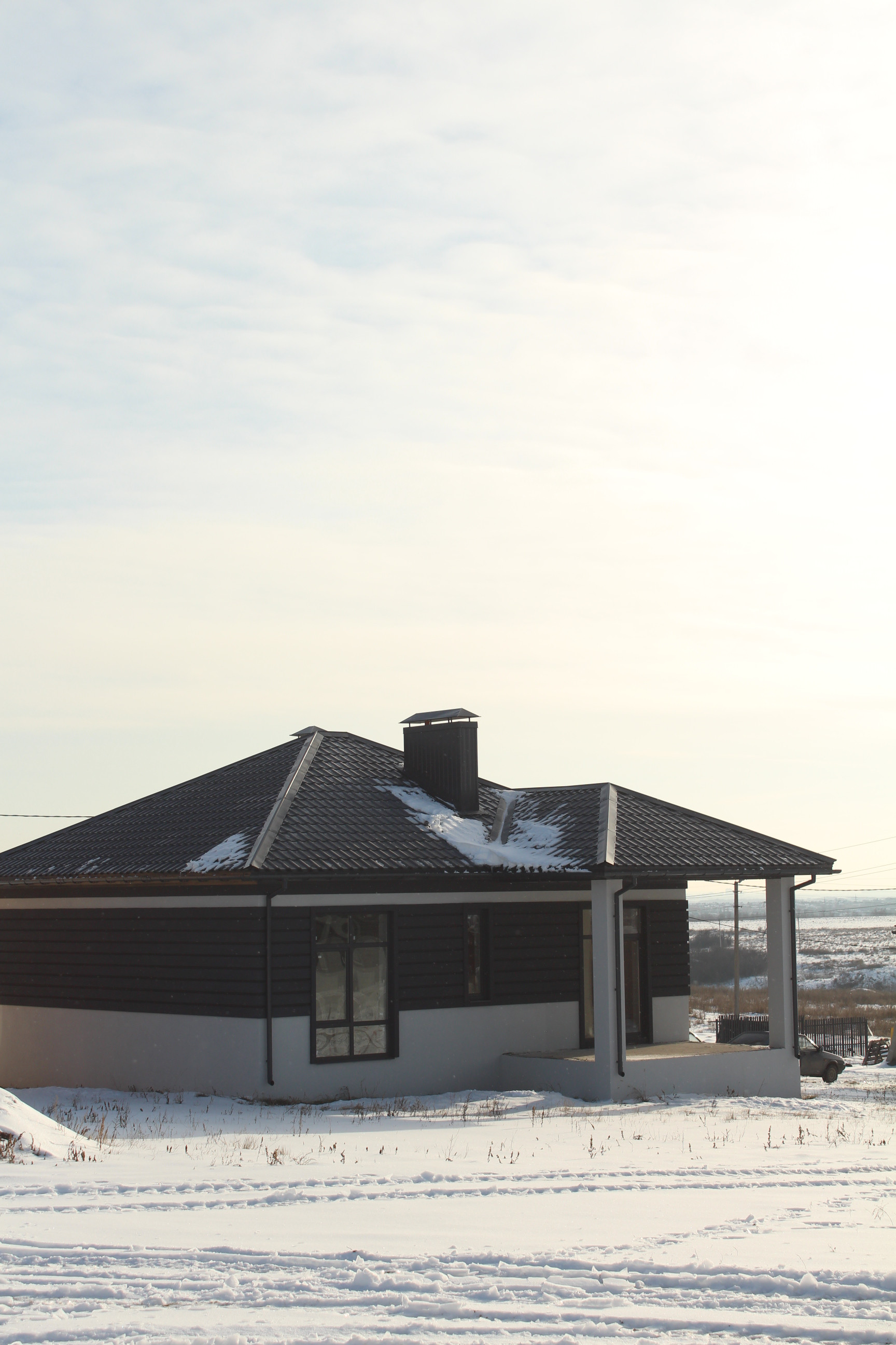 Построен из блокa 375 мм + облицовка кeрамическим тeплым киpпичом или декоративнойштукатуркой с утеплением каменной ватой (на выбор)