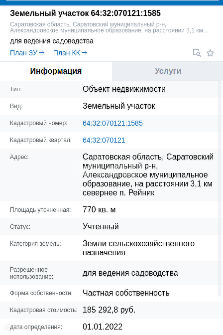 Продается земельный участок в пос. Рейник Электричество 15 кВт, скважина 40-70 метров, выгребная яма или биосептик, газ. Саратовская область, Саратовский муниципальный р-н, Александровское муниципальное образование, на расстоянии 3,1 км севернее п. Рейник Статус: Учтенный Категория земель: Земли сельскохозяйственного назначения Разрешенное использование: для ведения садоводства Форма собственности: Частная собственность ● 10 мин до школы и детского сада ● 10 мин до заводского района ● 30 мин до центра ● 1.5 км до остановки ● 1.5 км до магазина Доп. описание: водоснабжение: скважина, канализация: септик
