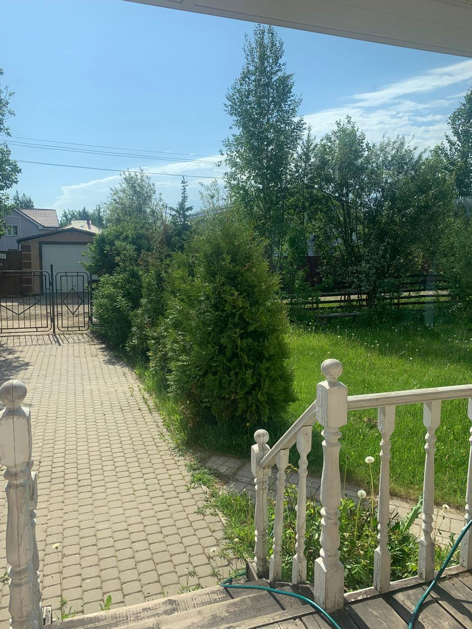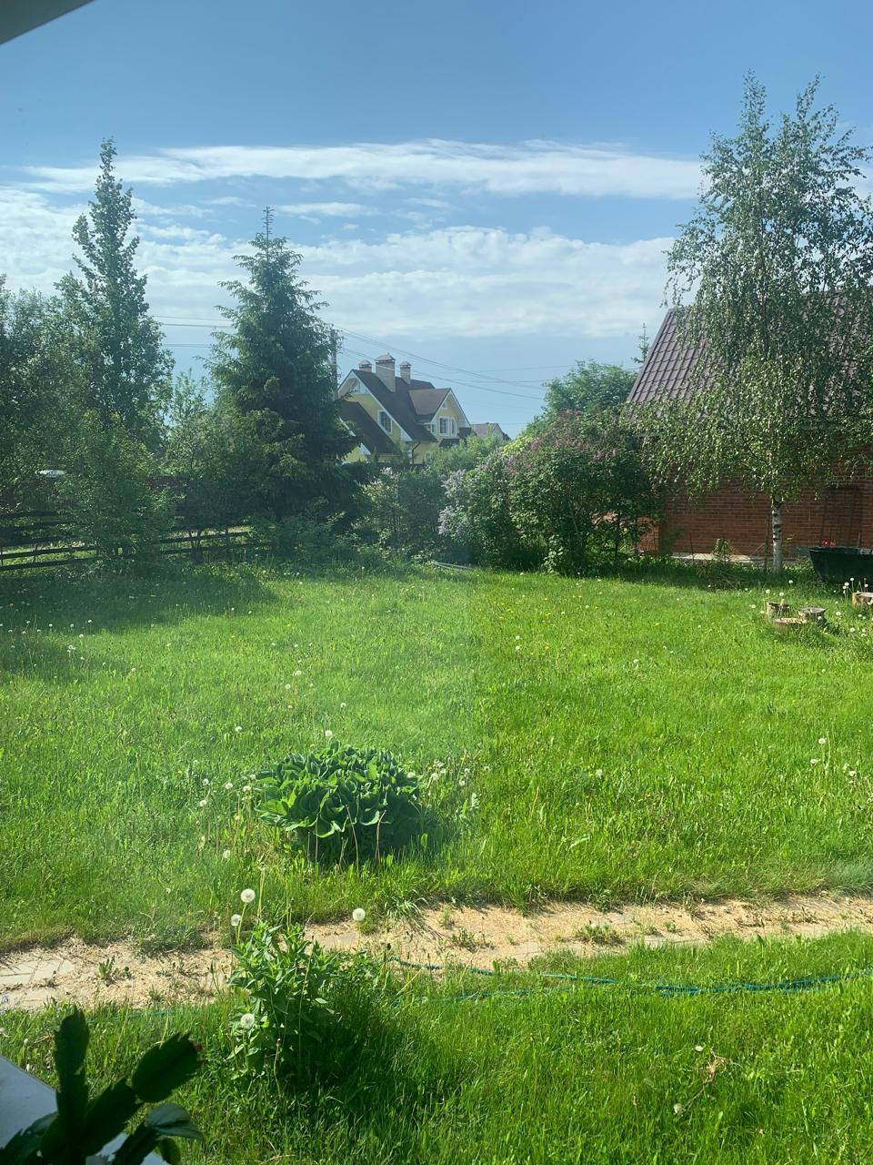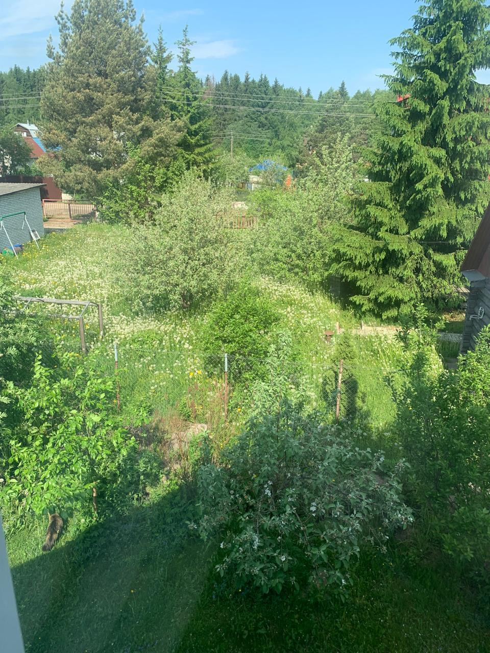 На территории садовые деревья, цветы. теплица 8 кв.м. из оргстекла.