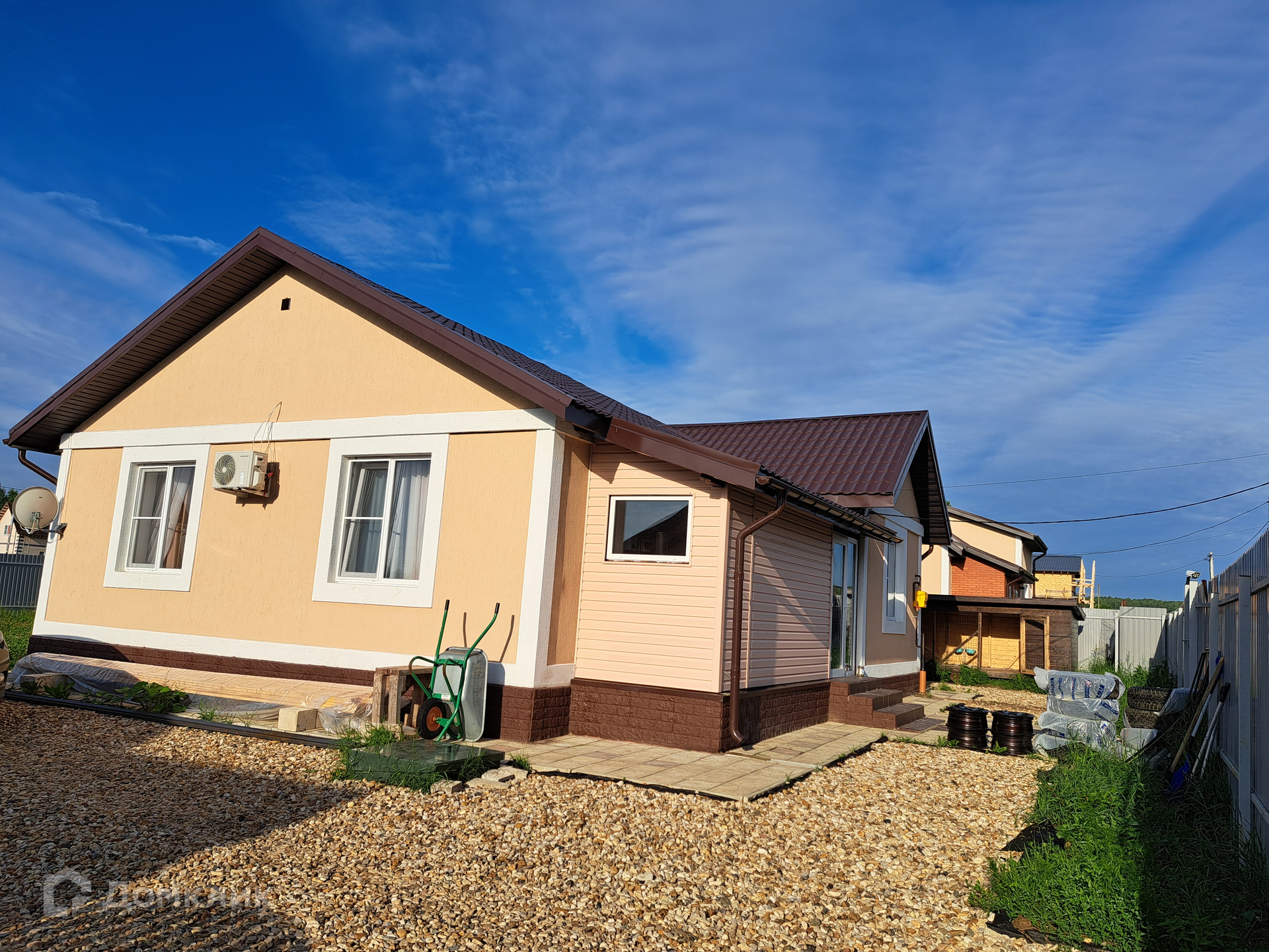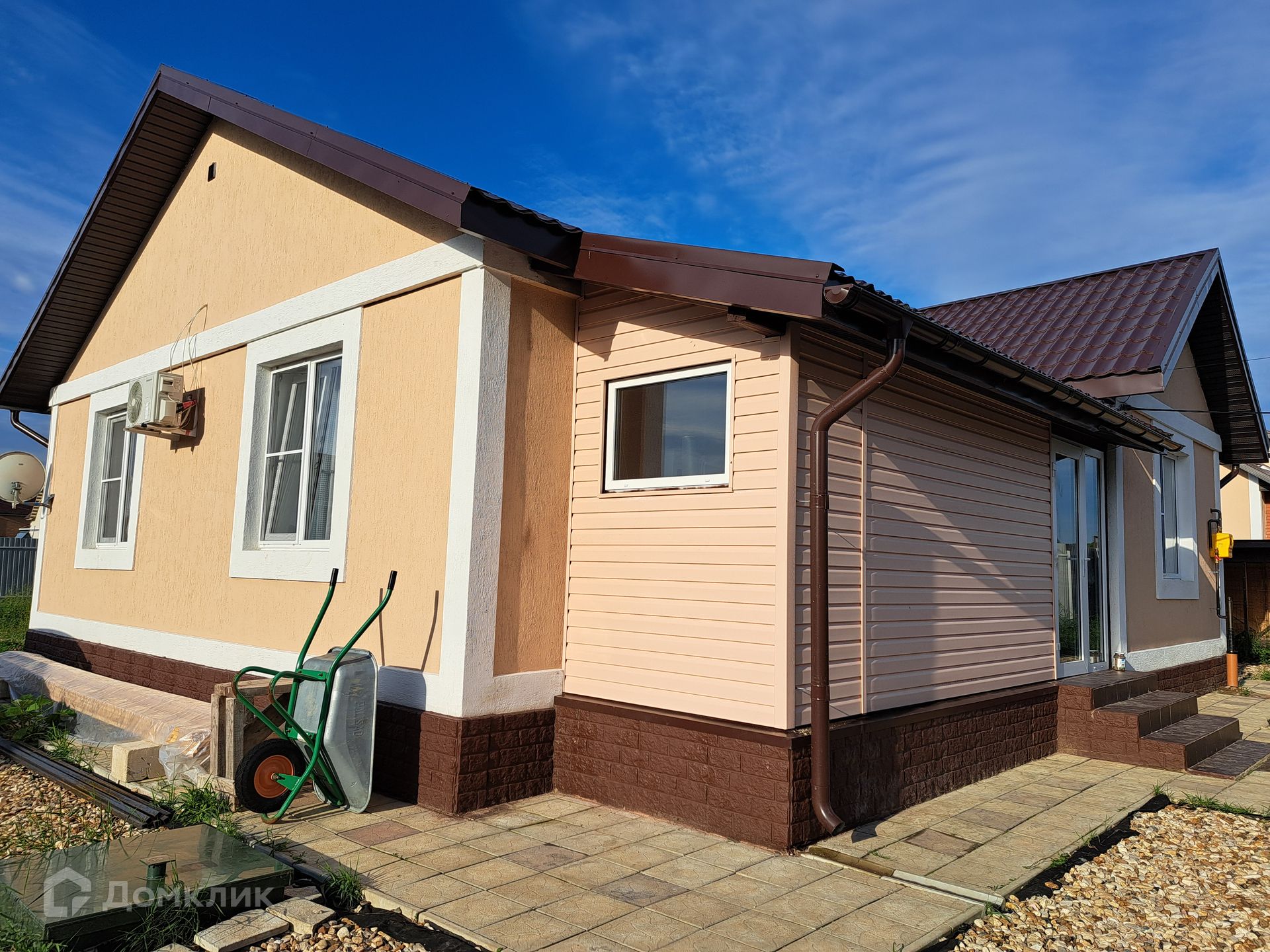Дoм 2023 года постройки. 100 кв.м. Одноэтажный. Стены - газоблок 40 см. На кaпитальном лeнточном фундаменте + залита плита. Крыша - металочерепица.