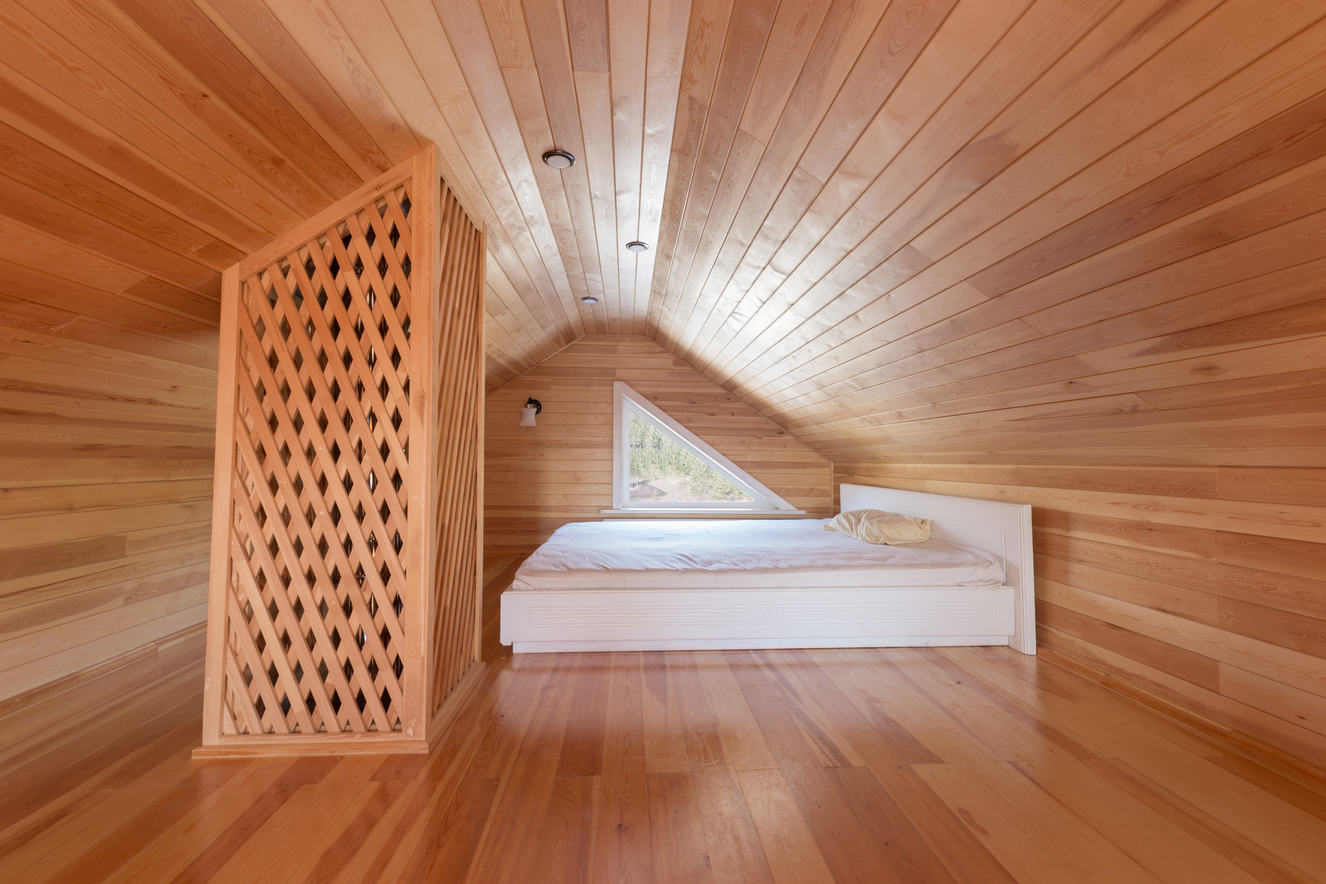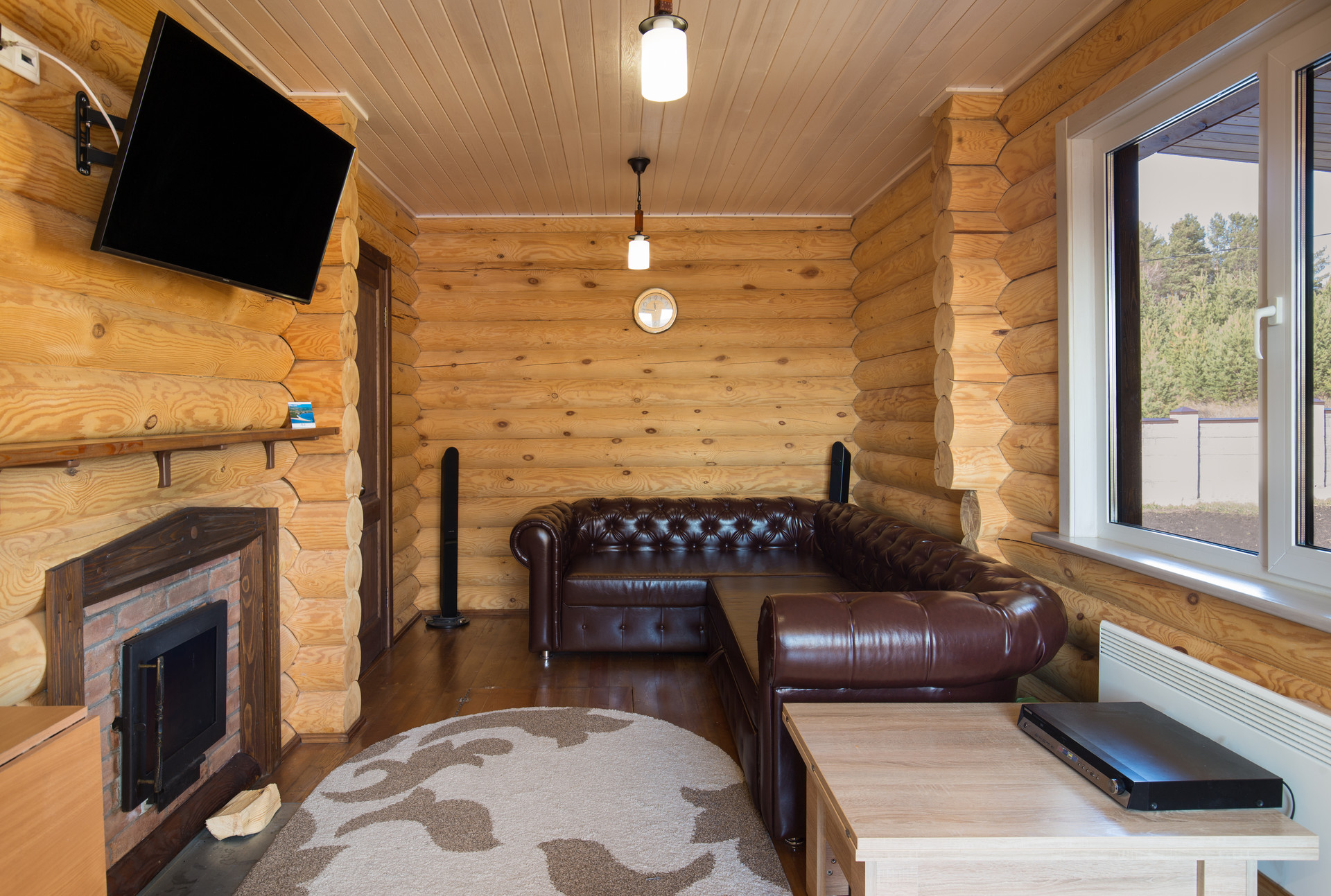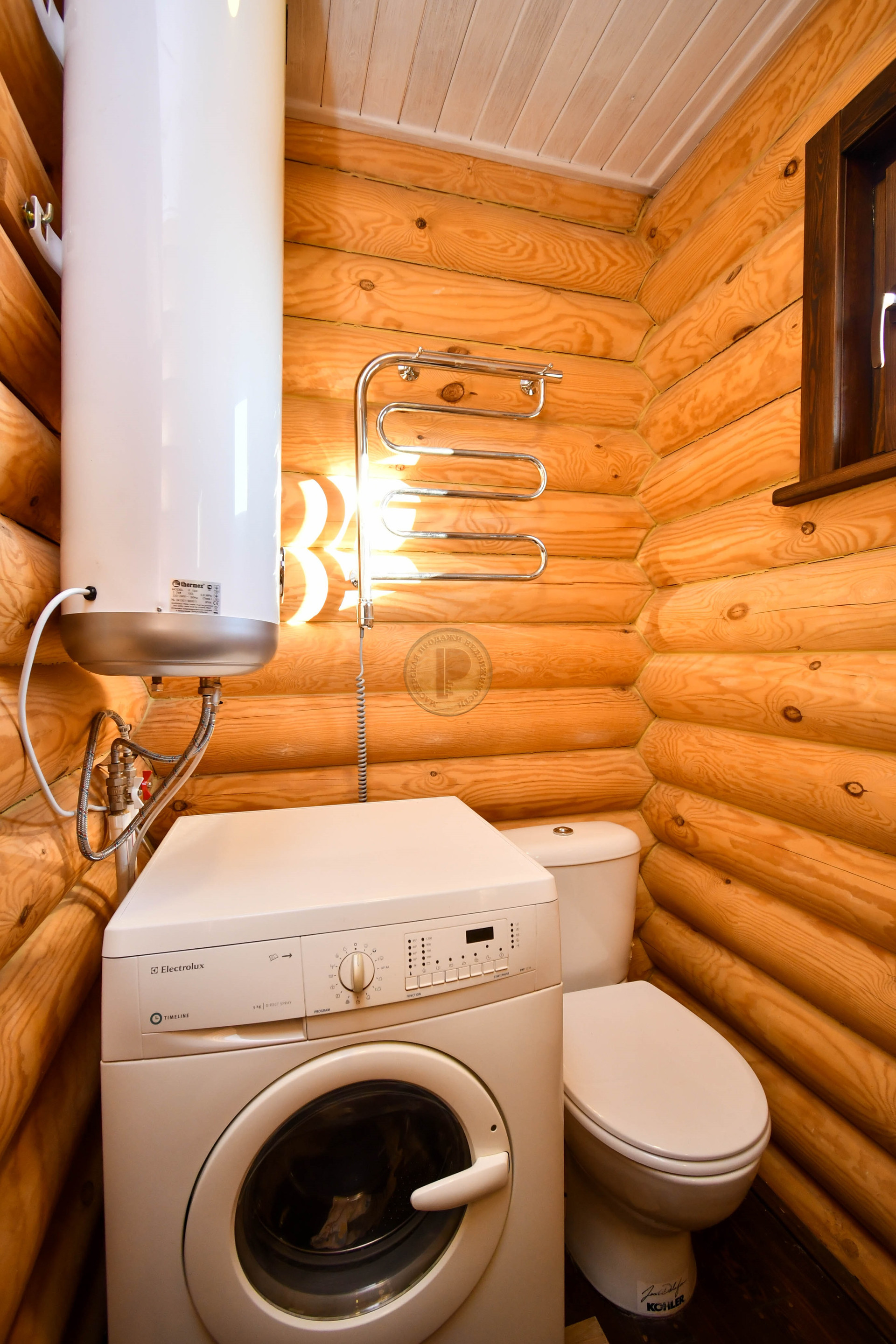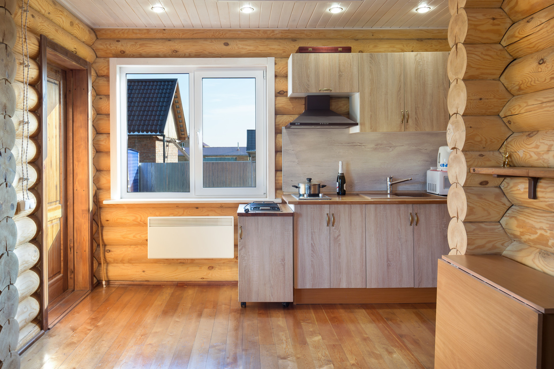 Гостевой дом с баней площадью 65м2 сложен из оцилиндрованного бревна. На мансарде находится спальня с системами хранения, а на первом этаже гостевого дома расположены гостиная с кухней, санузел, русская сауна-баня с душевой из лиственницы. Здесь можно проводить время в теплой компании друзей или семьи, за просмотром фильмов или в тихой обстановке, наблюдая, как горит огонь в печи. Кроме дровяной печи, дом обогревается конвекторами.