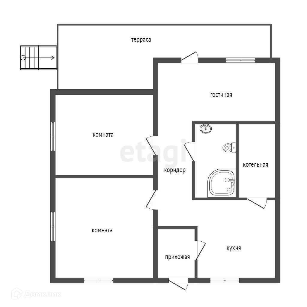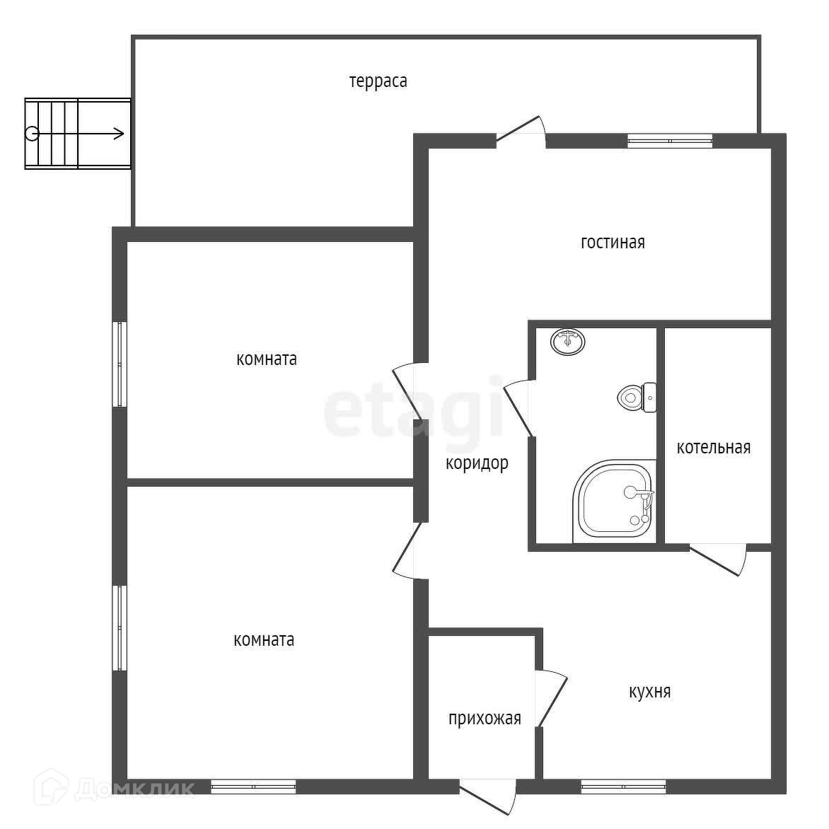 Котельная расположена в отдельной комнате. Есть бойлер.