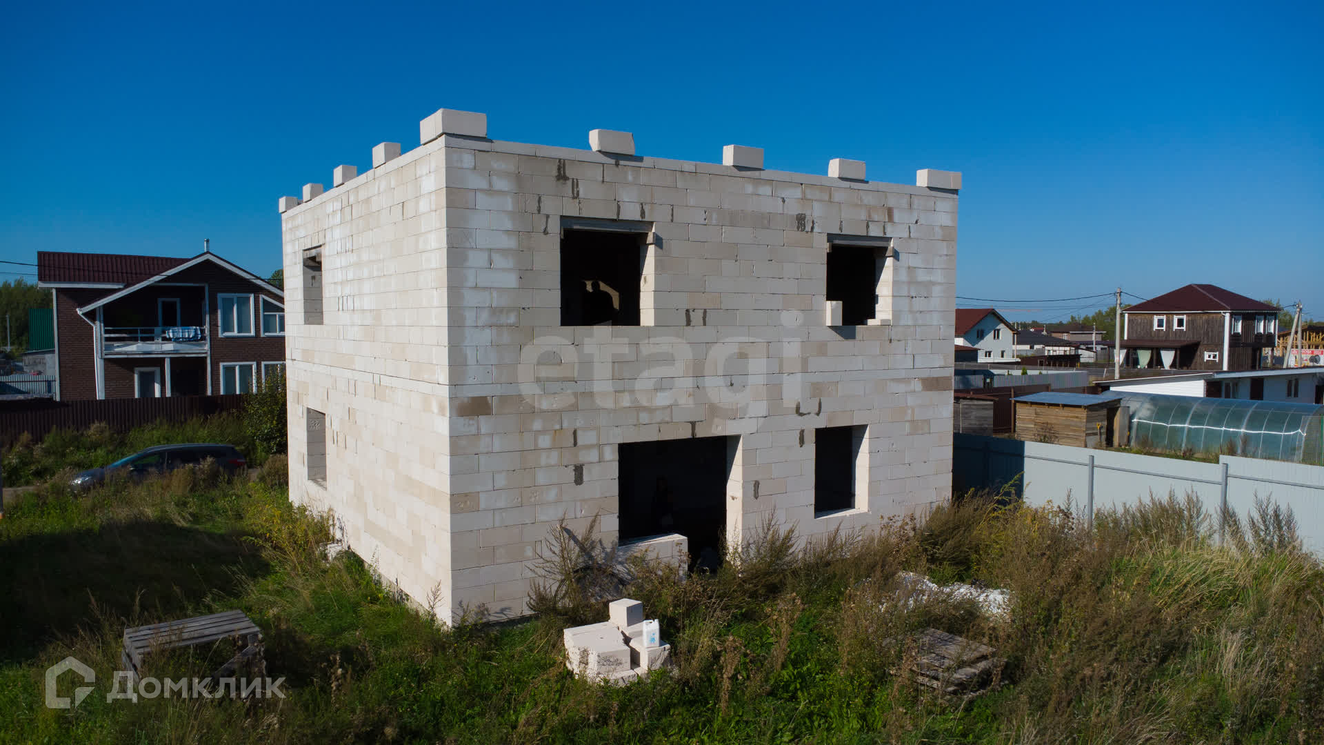 К продаже представлен двухэтажный дом 9*10 из газобетона шириной 40см, с бетонными перекрытиями между этажами! Сама крыша плоская, бетонная! Есть возможность сделать мансардный этаж!