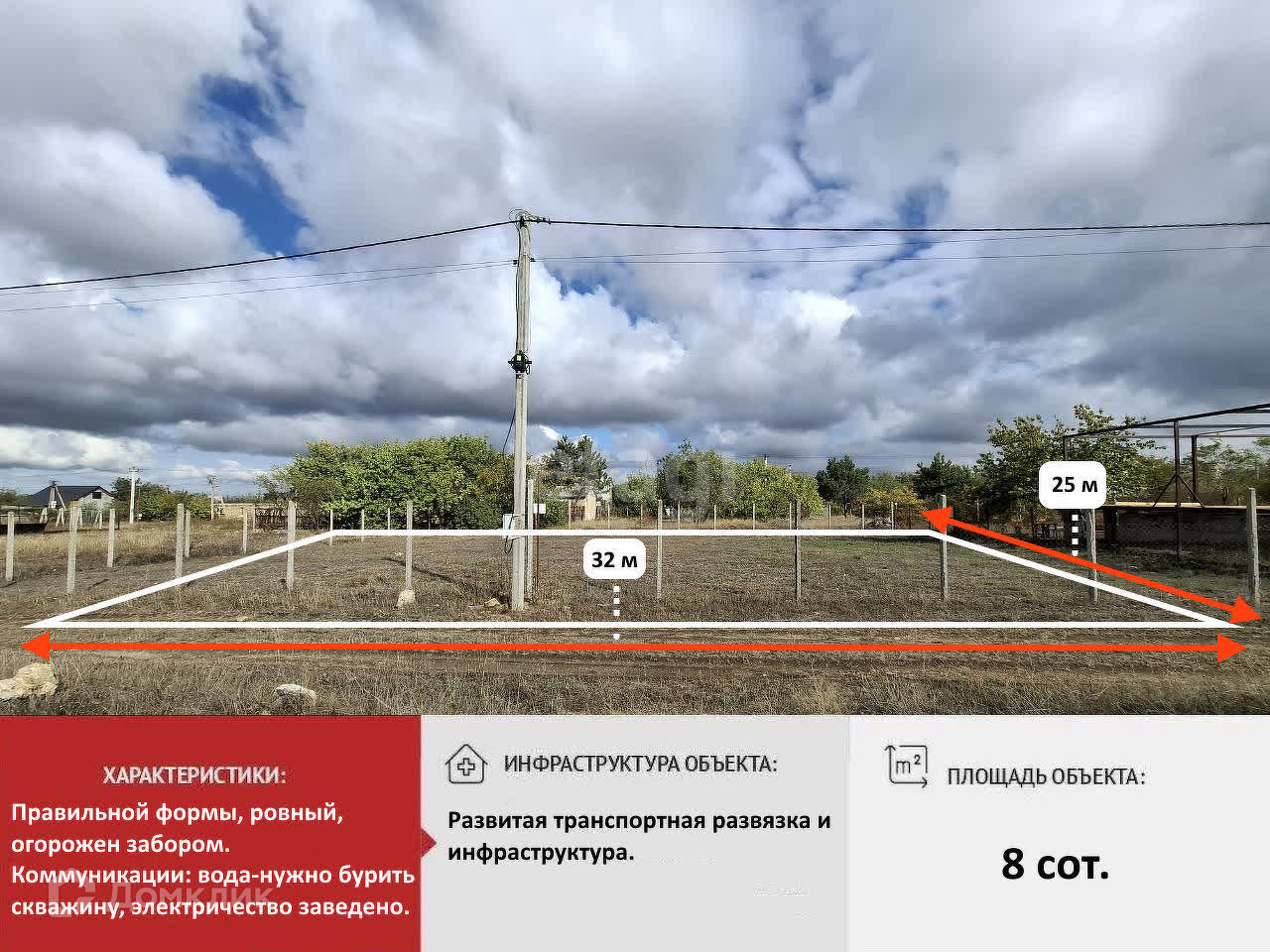 Предлагаем приобрести, земельный участок, 8 соток. Правильной формы, ровный, огорожен забором.