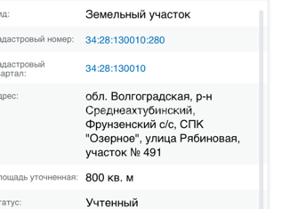 Земельный участок 1000 кв. м. в СПК "Озерное" Госпитомник. Участок 289.Кадастровый номер 34:28:130008:77 . Собственник. |