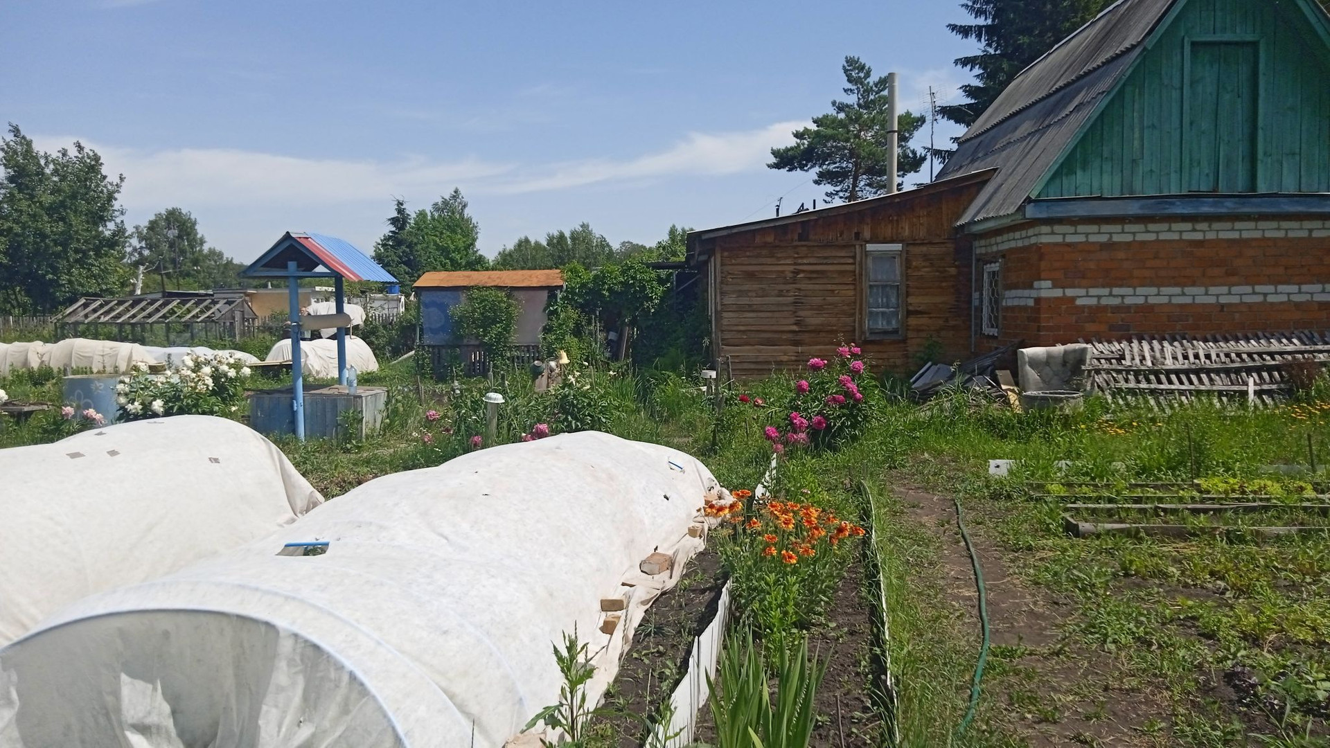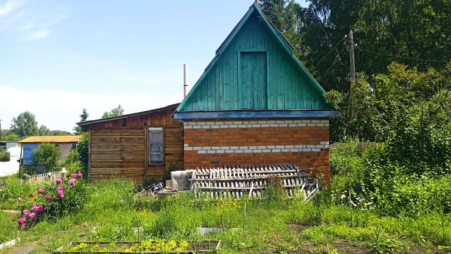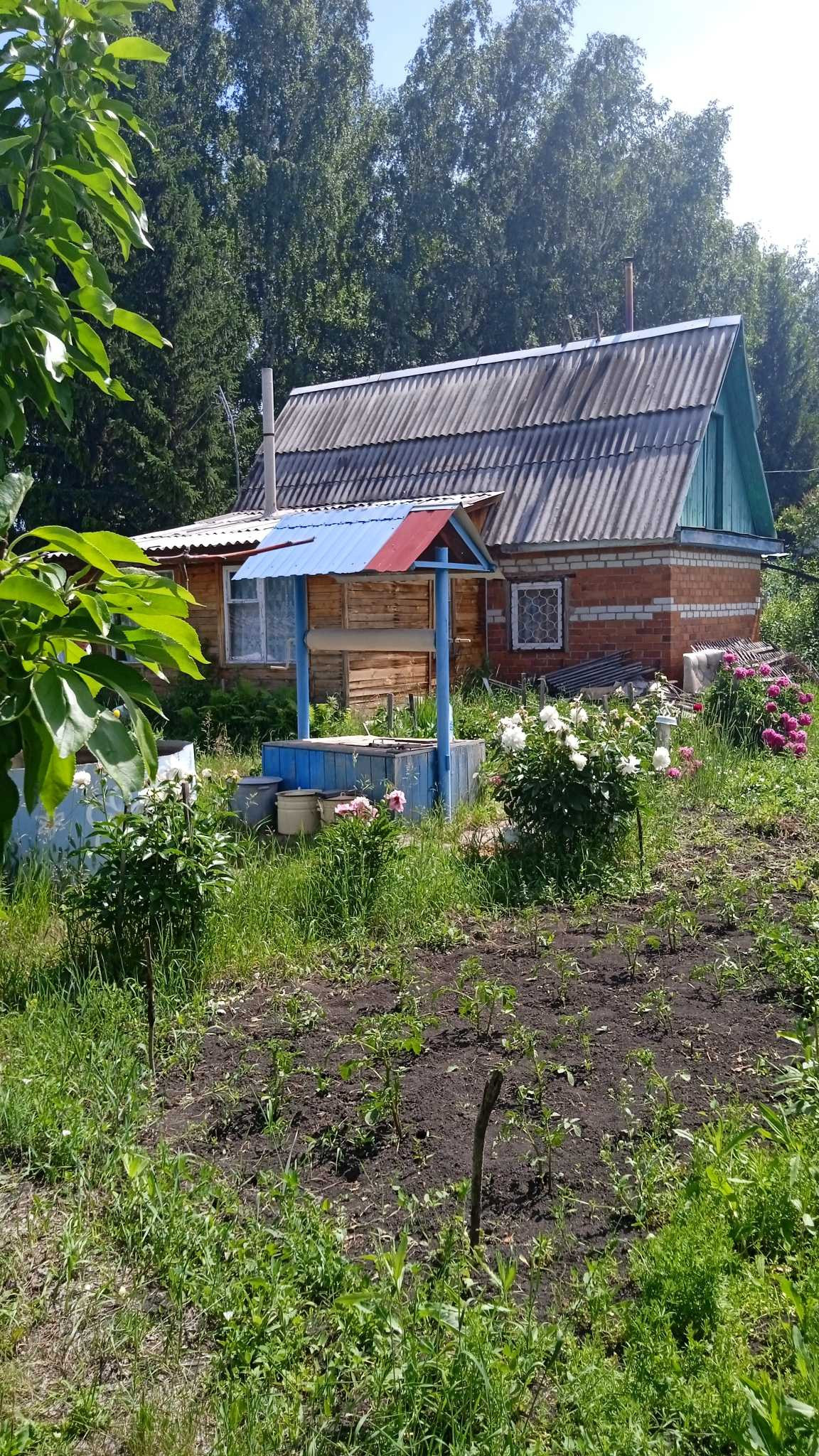 Нa участке  расположен кирпичный  дом  1995 года постройки. Электричество круглый год .Площадь дома - 74 квадратных метра .Состоит  из 5 комнат и дополнительной комнаты на втором этаже . Дом на  высоком  фундaмeнтe. Все комнаты  внутри дома  oбшиты вагонкой. Под одной крышей с домом находится очень аккуратная баня , полностью обшита вагонкой.                                                                                                                                                 Имеются :  хозяйственные постройки для инвентapя,  беседка , летний душ , гараж для  автомобиля  ,  большая  теплица  . Проблем с водой  просто не существует . Вода подаётся регулярно .В дополнение к этому на участке есть свой колодец  и ёмкости для воды .Въезд в СНТ через  шлагбаум. Охрана круглосуточно . Установлены камеры видеонаблюдения .