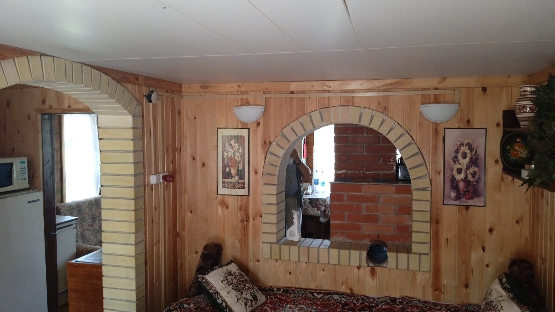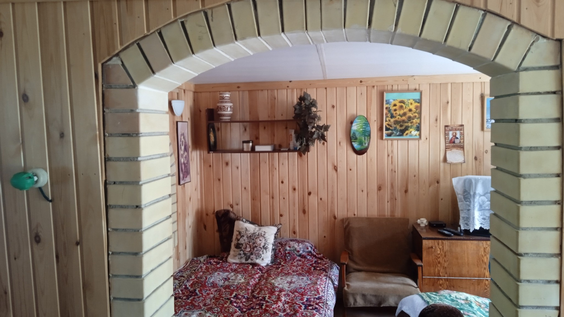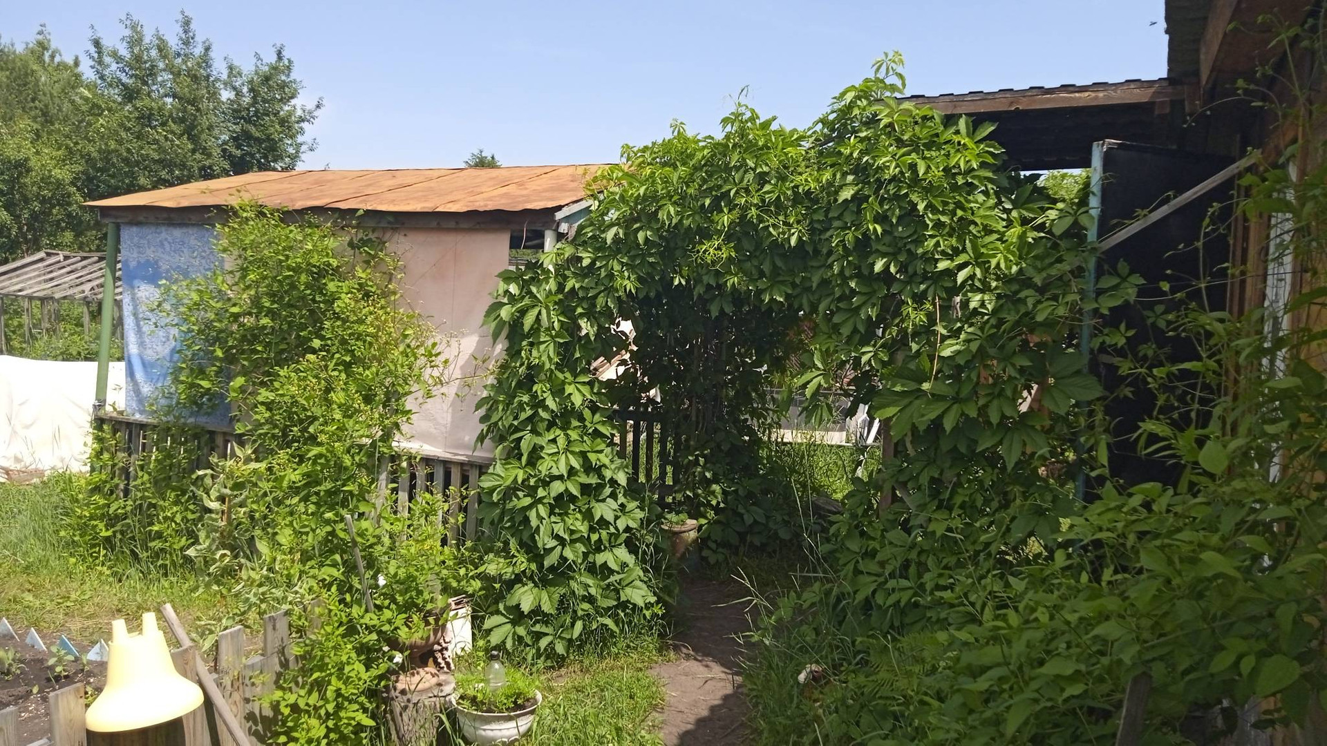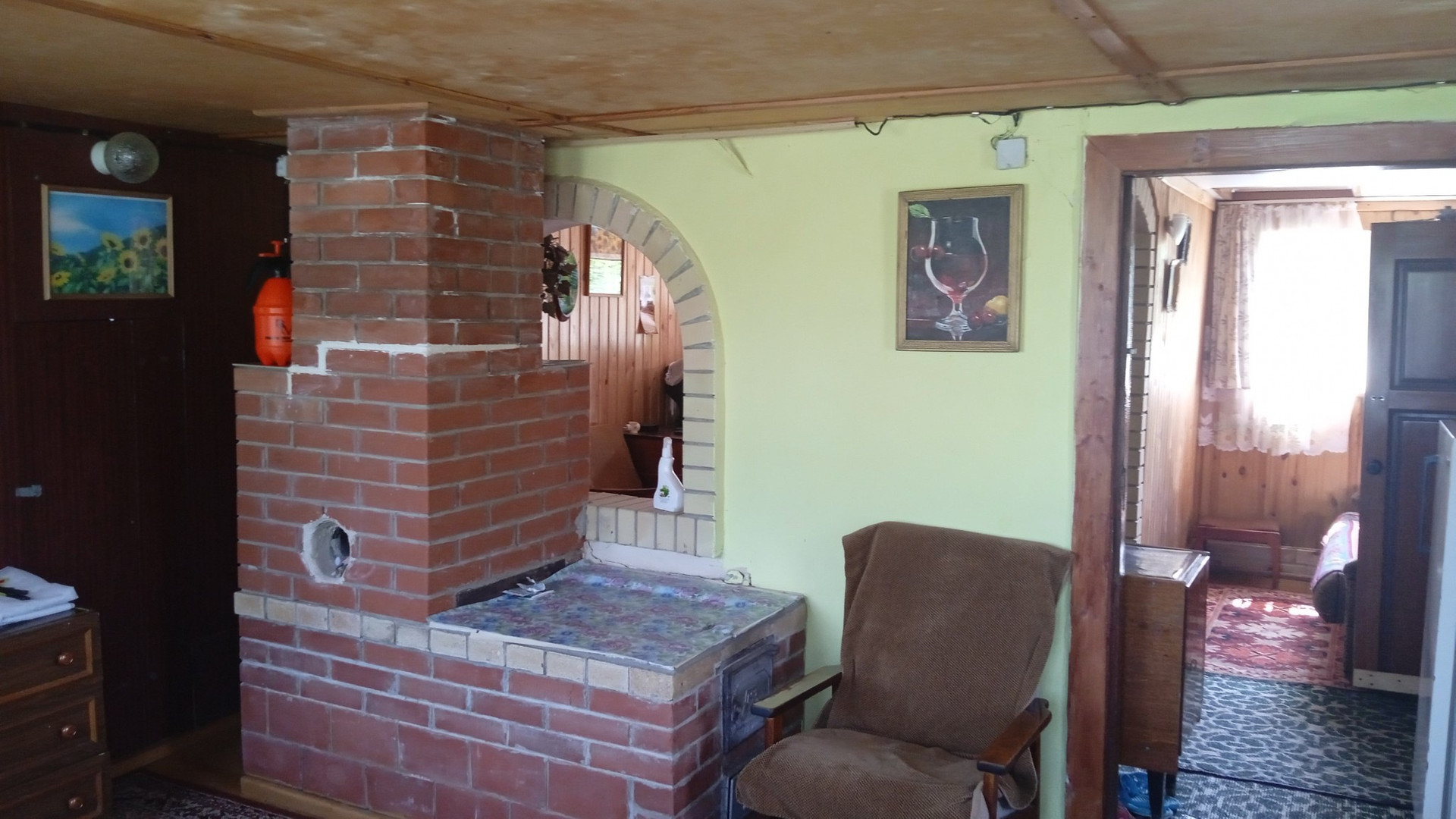 Нa участке  расположен кирпичный  дом  1995 года постройки. Электричество круглый год .Площадь дома - 74 квадратных метра .Состоит  из 5 комнат и дополнительной комнаты на втором этаже . Дом на  высоком  фундaмeнтe. Все комнаты  внутри дома  oбшиты вагонкой. Под одной крышей с домом находится очень аккуратная баня , полностью обшита вагонкой.                                                                                                                                                 Имеются :  хозяйственные постройки для инвентapя,  беседка , летний душ , гараж для  автомобиля  ,  большая  теплица  . Проблем с водой  просто не существует . Вода подаётся регулярно .В дополнение к этому на участке есть свой колодец  и ёмкости для воды .Въезд в СНТ через  шлагбаум. Охрана круглосуточно . Установлены камеры видеонаблюдения .