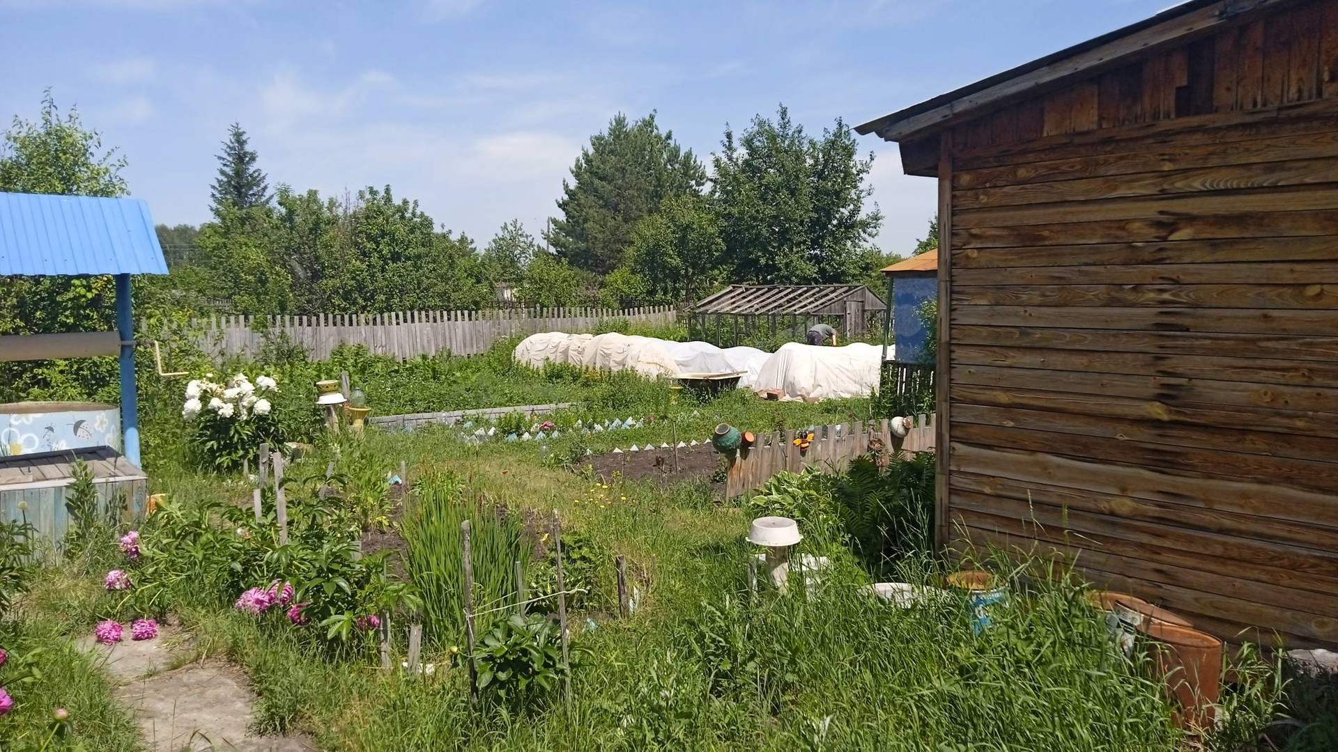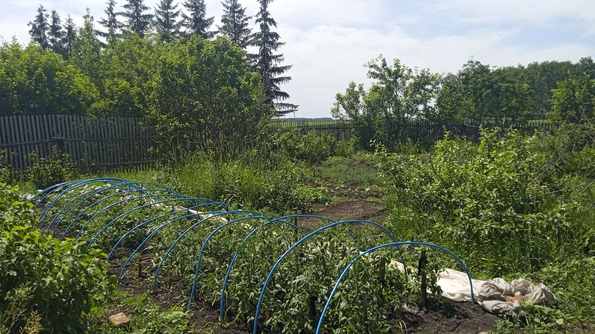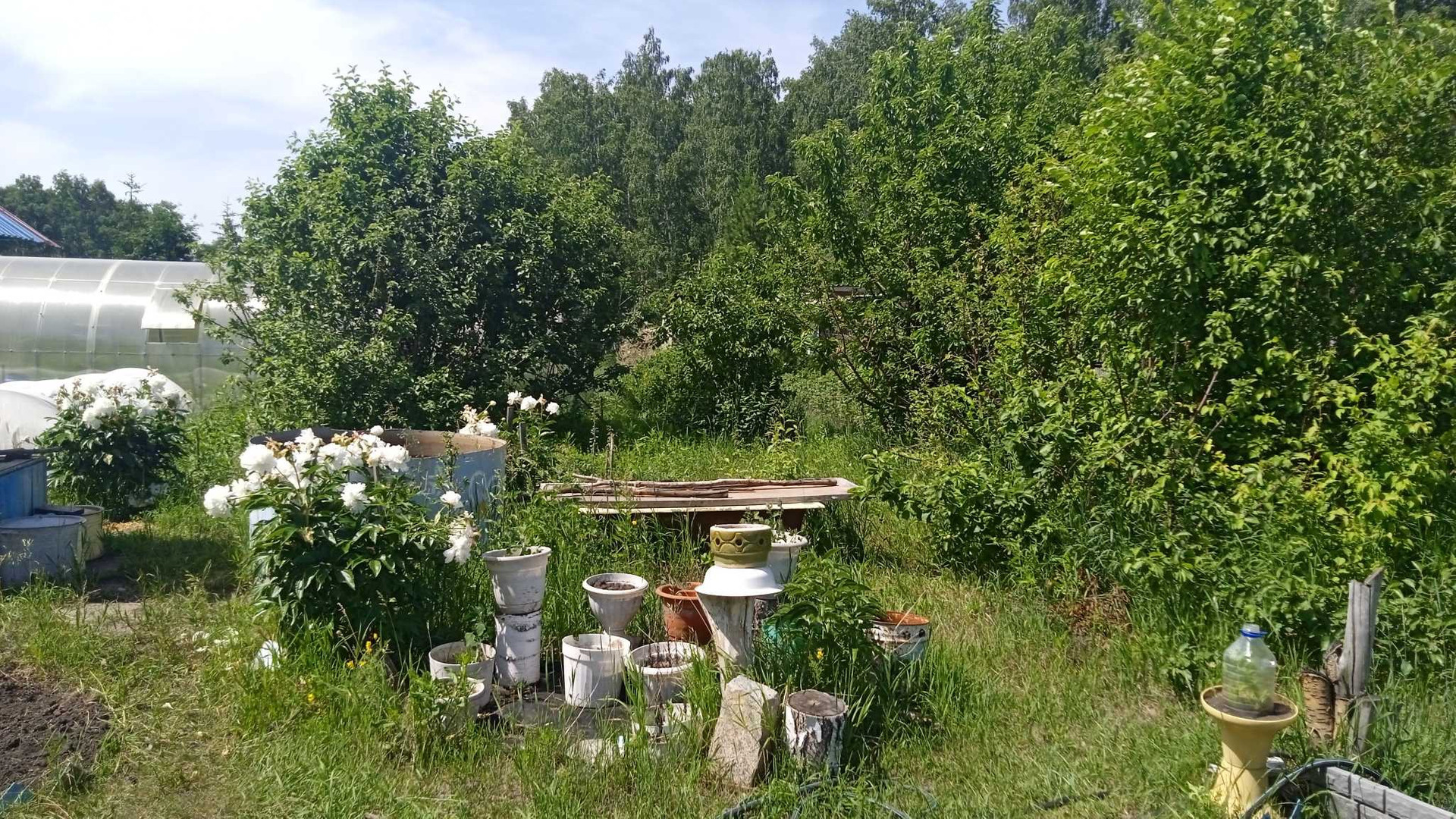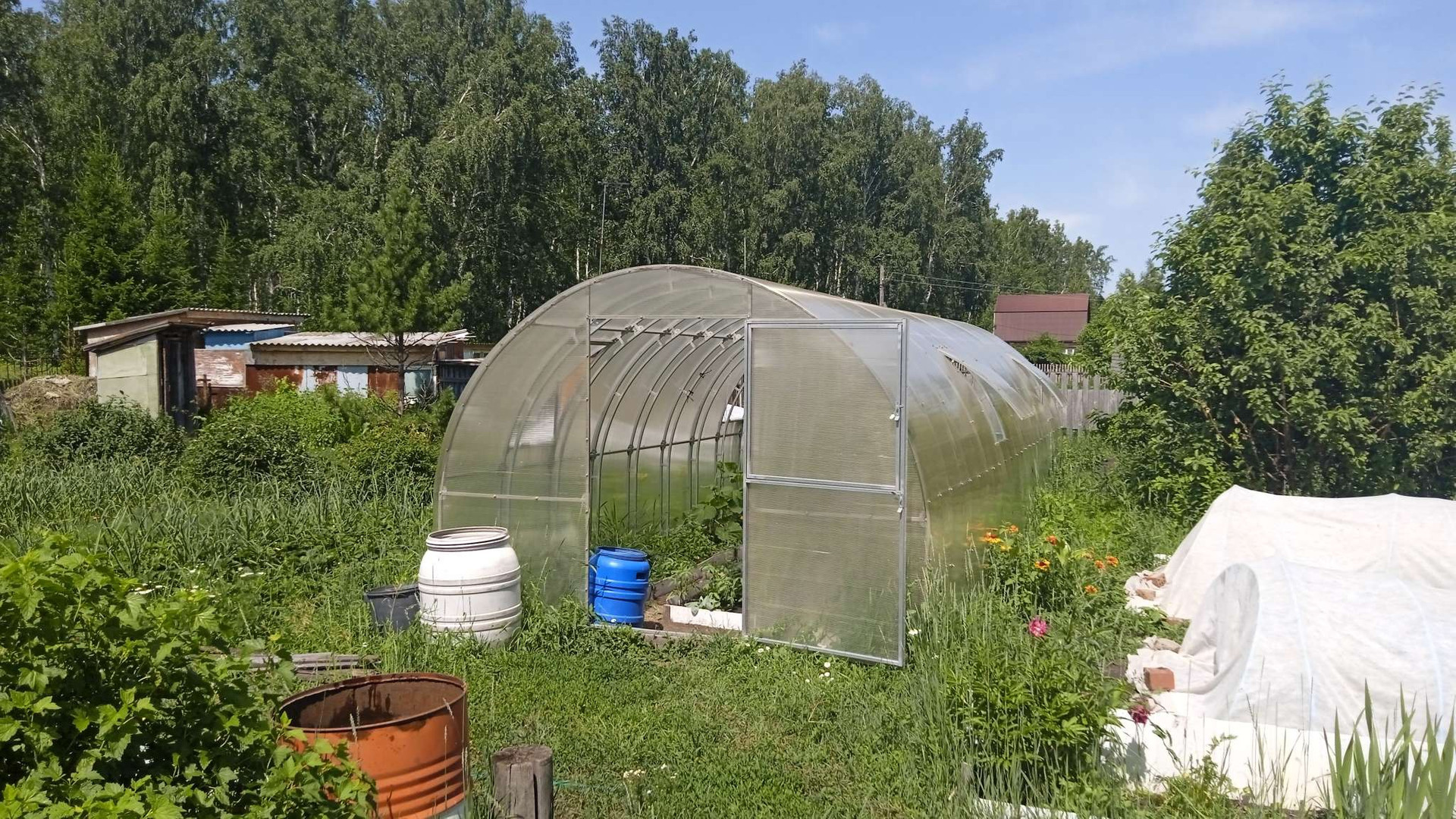 Посадки: яблоневые деревья в количестве 7, грушевые деревья в количестве 3 .    Кустарники  : крыжовник, вишня,  смородина нескольких сортов . Грядки с викторией . Всё выше перечисленное  плодоносит .