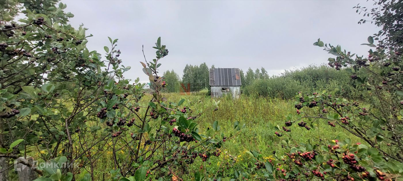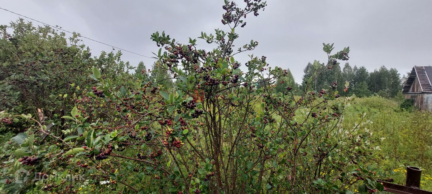 На участке находится старенький домик, можно хранить инвентарь. А также есть насаждения: вишня, ирга, чёрная рябина, красная черёмуха, яблоня. Участок в собственности, проведено межевание.