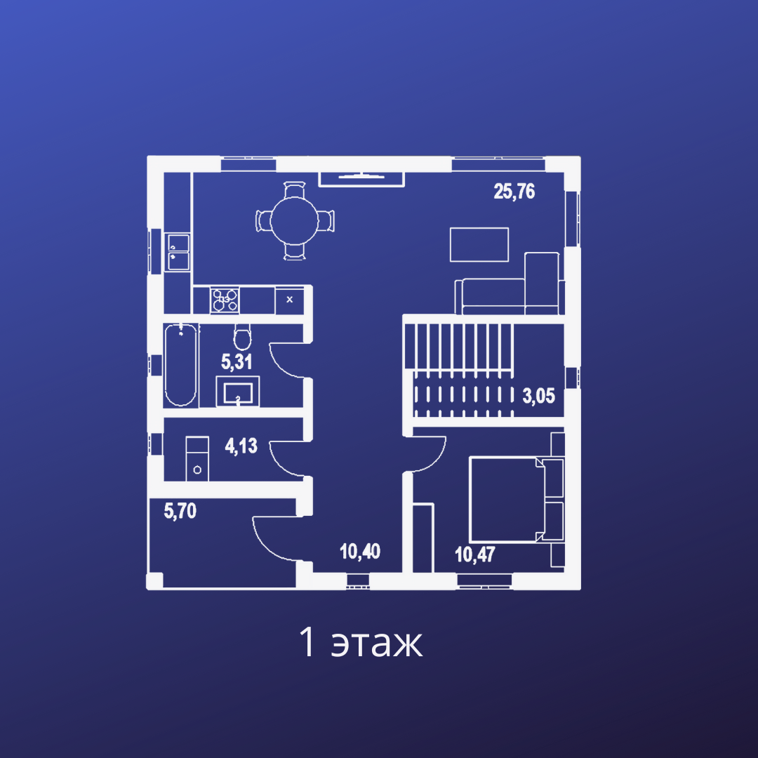 - 1 этаж - котельная, санузел, гостевая комната, большая кухня-гостинная;