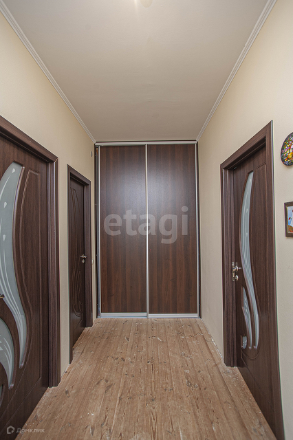 коридор с вместительной гардеробной -12,2 кв.м; спальня -13,2 кв.м, детская -11,9 кв.м, спальня -11,9 кв.м; совмещенный санузел -6,2 кв.м; большой балкон с выходом с двух спален. Напольное покрытие по этажу -дерево, потолки и стены -покрашены, санузел полностью в плитке.