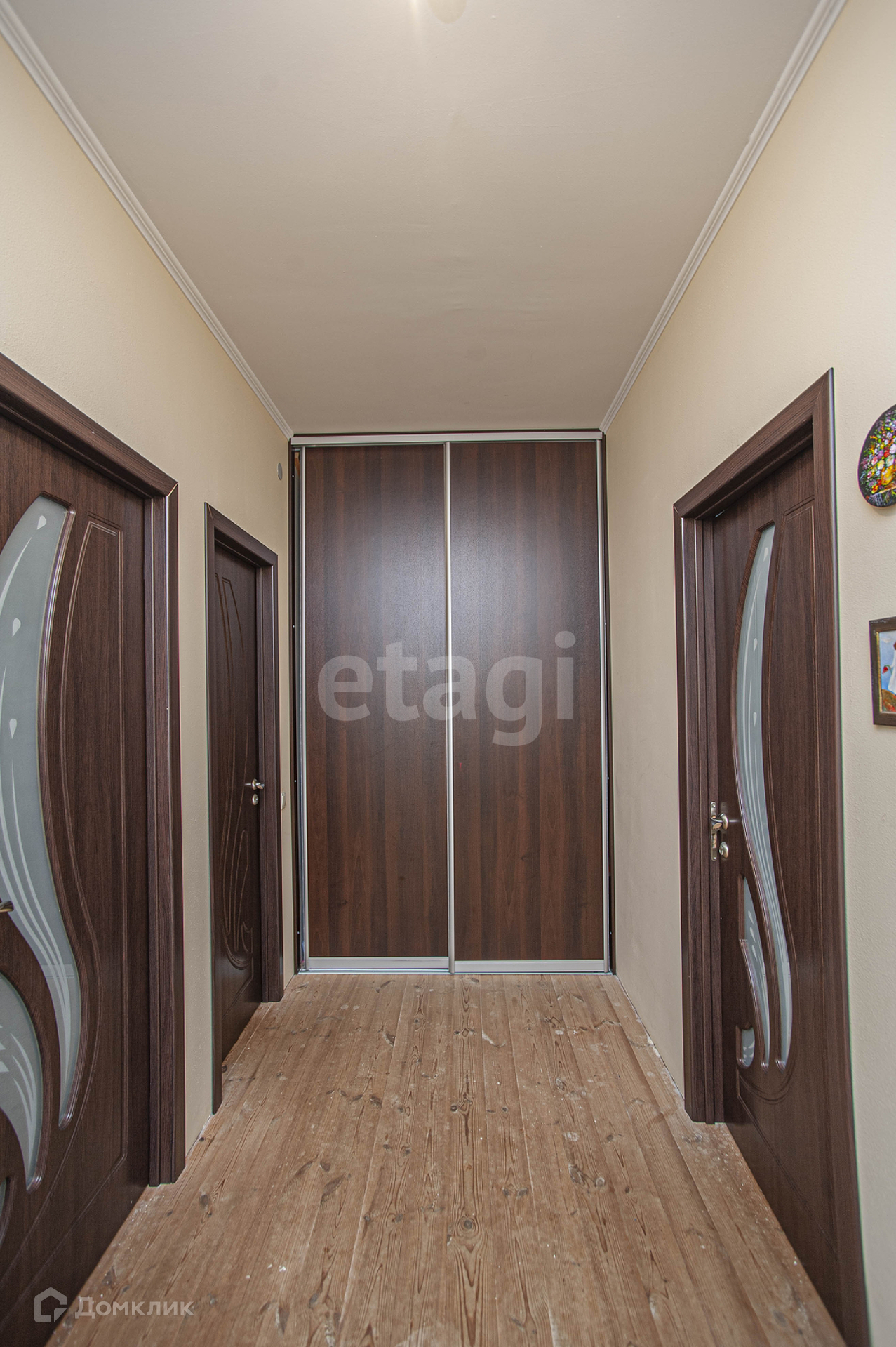 коридор с вместительной гардеробной -12,2 кв.м; спальня -13,2 кв.м, детская -11,9 кв.м, спальня -11,9 кв.м; совмещенный санузел -6,2 кв.м; большой балкон с выходом с двух спален с прекрасным видом на МОРЕ! Напольное покрытие по этажу -дерево, потолки и стены -покрашены, санузел полностью в плитке.