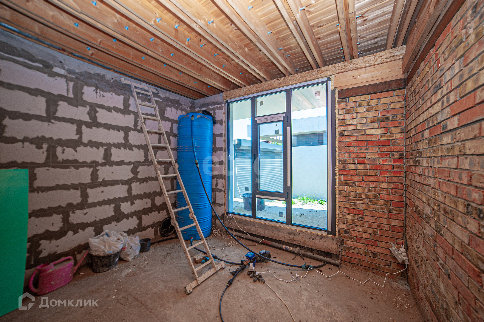 Дом построен из газобетона.Часть внутренних стен выполнены из камня, который можно просто покрасить и он послужит стильным элементом декора. Крыша эксплуатируемая, при желании можно использовать как открытую террасу, все нагрузки рассчитаны и учтены при строительстве. С крыши открывается потрясающий вид на город и море.