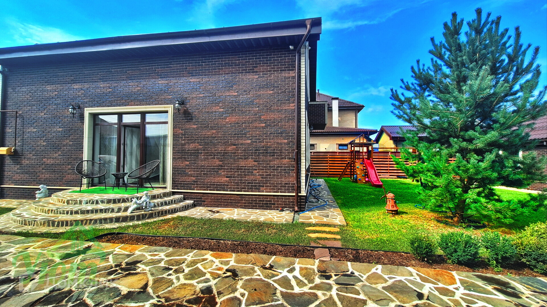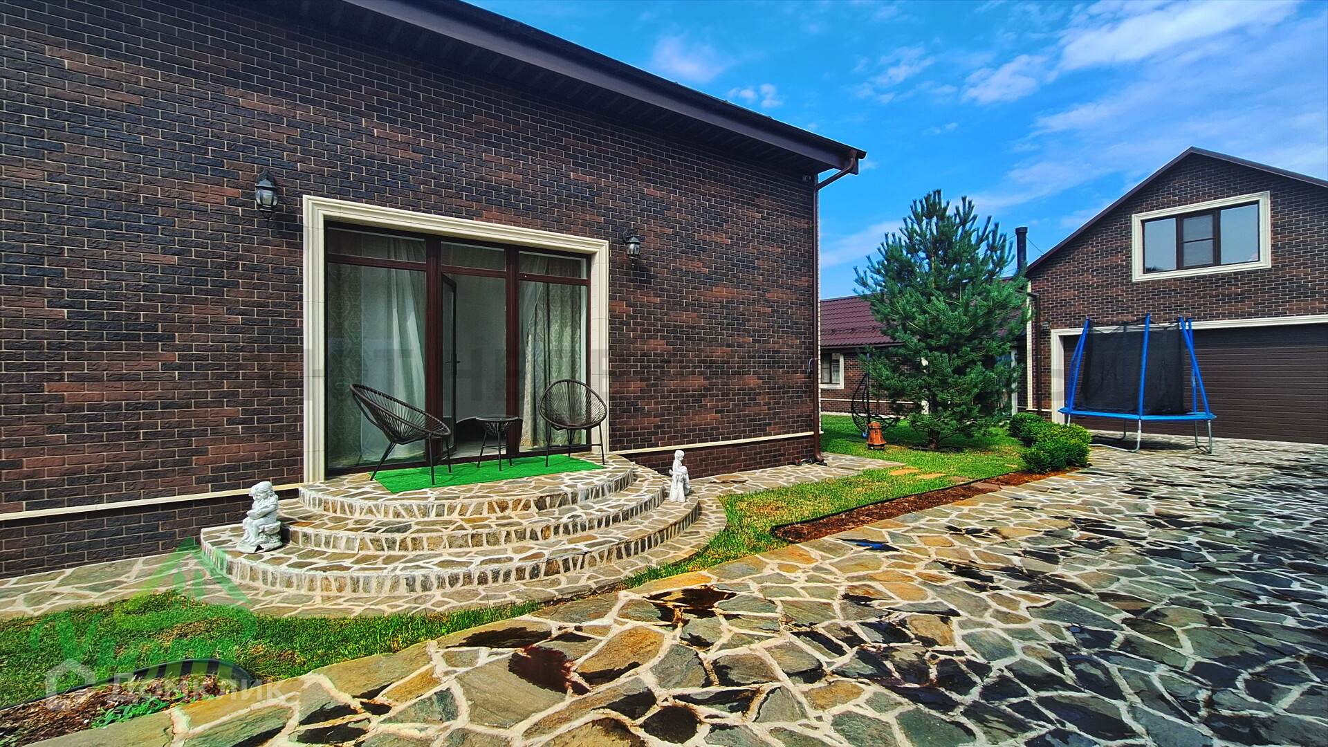 Участок: 6,5 сот, сухой , ровный, правильной формы. Со всех сторон огорожен забором. 2 въезда с откатными и автоматическими воротами, 2 машиноместа, видеонаблюдение по периметру. Территория возле дома благоустроена и покрыта газоном с высаженными деревьями хвойных пород.