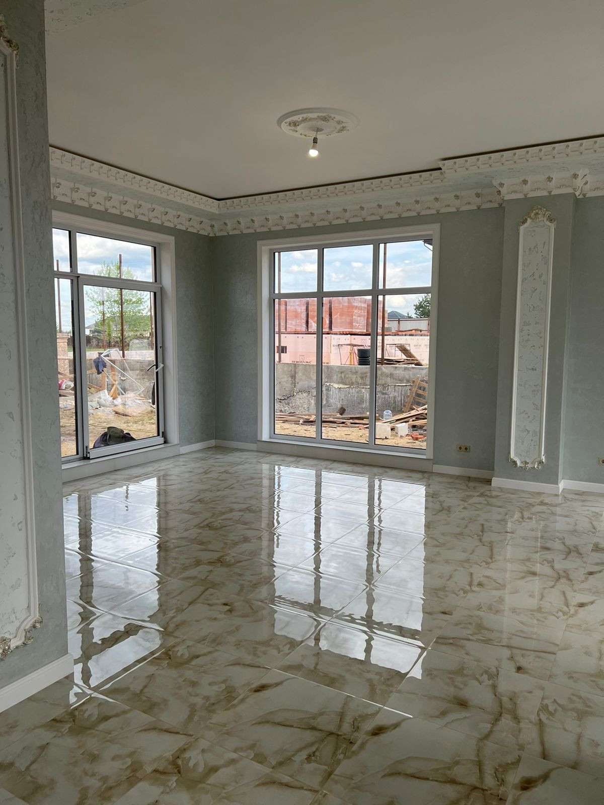 Земля относится к категории сельскохозяйственного назначения, что позволяет возводить на ней жилые дома, регистрироваться и проживать. Общая площадь дома составляет 230 квадратных метров, он имеет два этажа. Все коммуникации централизованные: вода, свет, электричество — уже подключены и заведены в дом. Он отапливается.