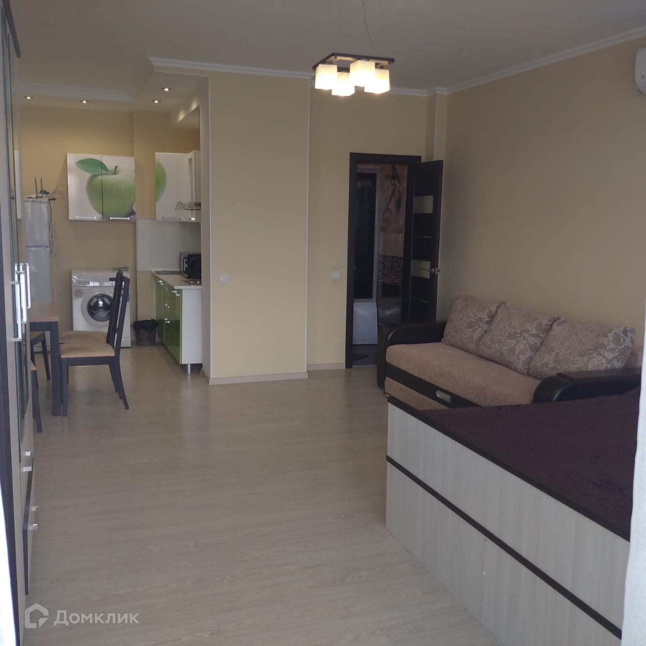 Апартаменты площадью 33 кв.м. имеют планировку студии, совмещенный санузел, террасу с придомовой территорией.