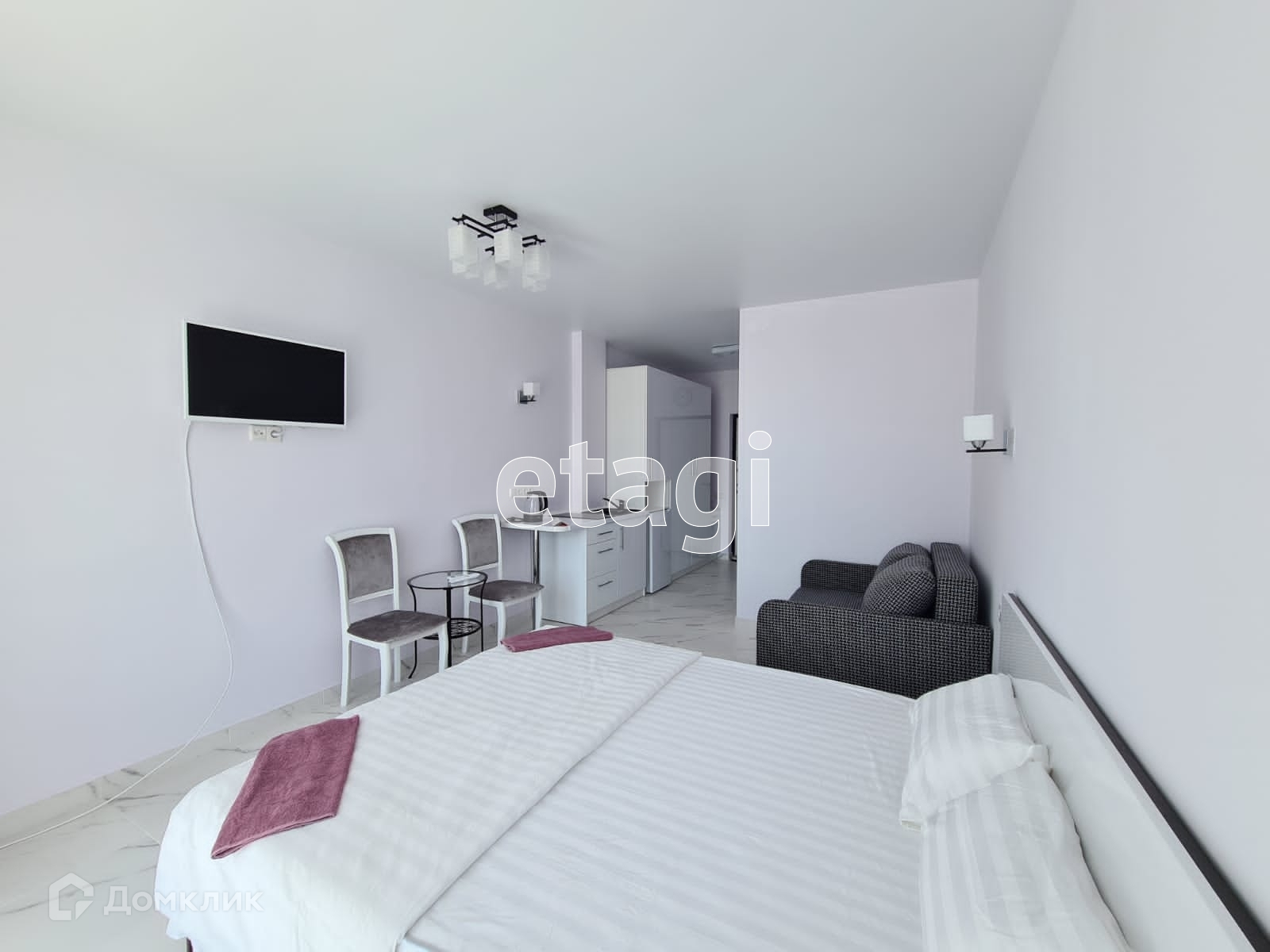 В помещении выполнен качественный современный ремонт. Санузел в плитке, качественная сантехника, современная душевая кабина, бойлер и стиральная машина. Всё помещение оснащено тёплыми полами, качественное напольное покрытие, кровать и полутораспальный диван на ламелях, шкаф-гардероб, столик и стулья, телевизор, кондиционер. В кухонной зоне, индукционная плита, встроенная кухня, холодильник и другая техника. Всё остаётся счастливым приобретателям.
