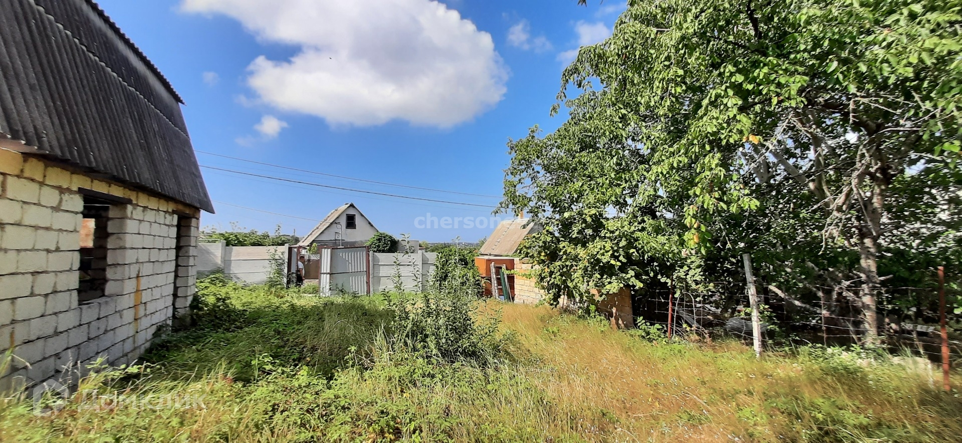 Участок ровный, правильный прямоугольник, свет, вода. На участке емкость для воды и недостроенный дачный дом из инкерманского камня - использование на ваше пожелание: под гостевой дом, под гараж или разобрать на стройматериалы.