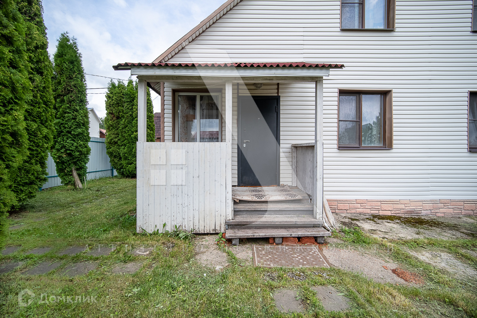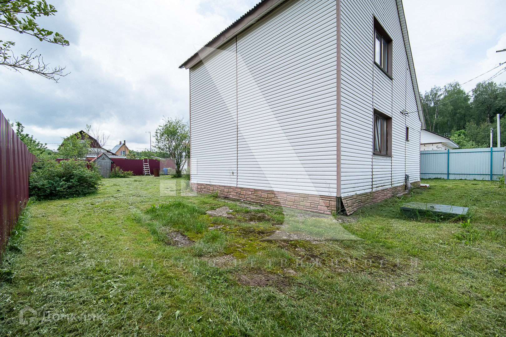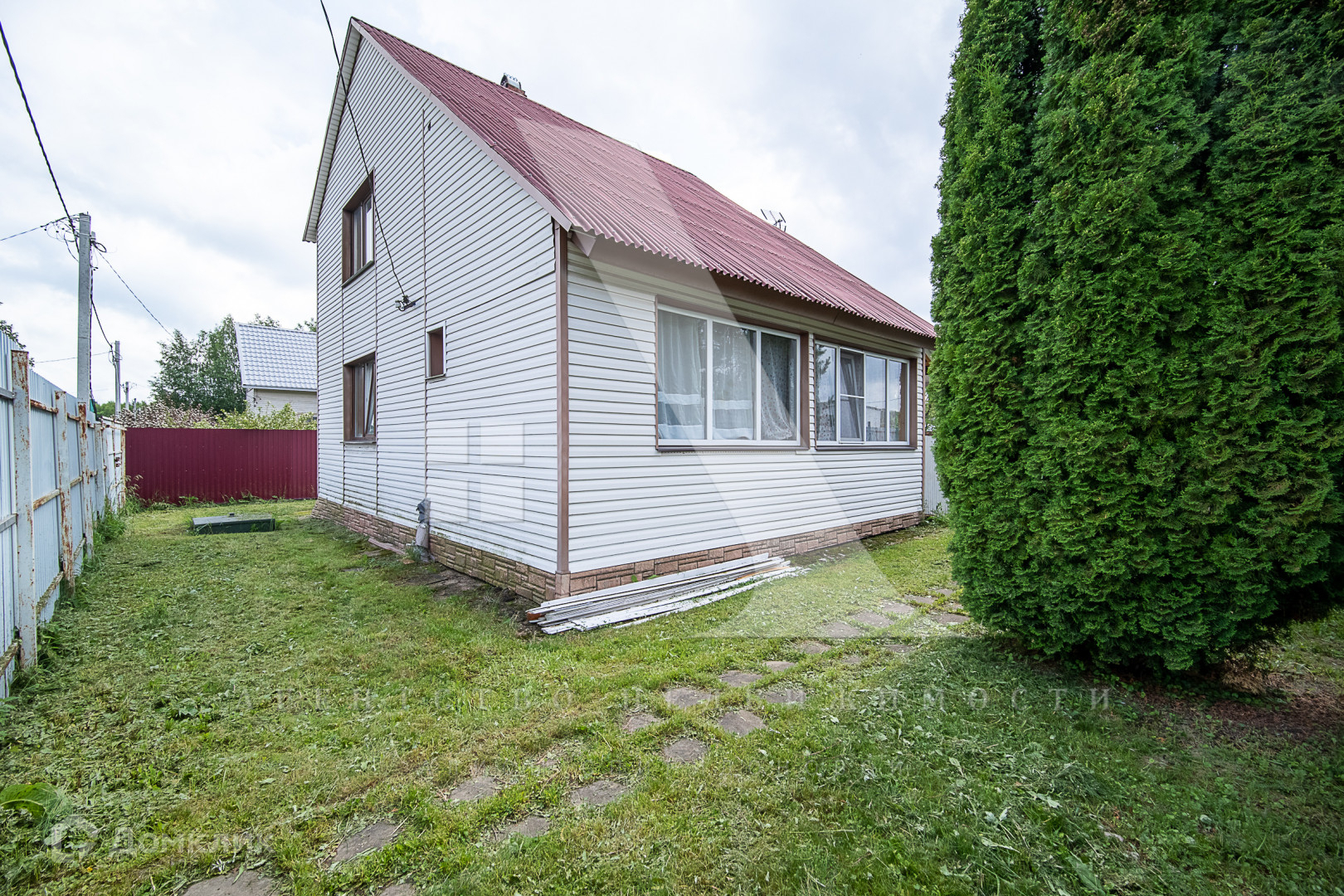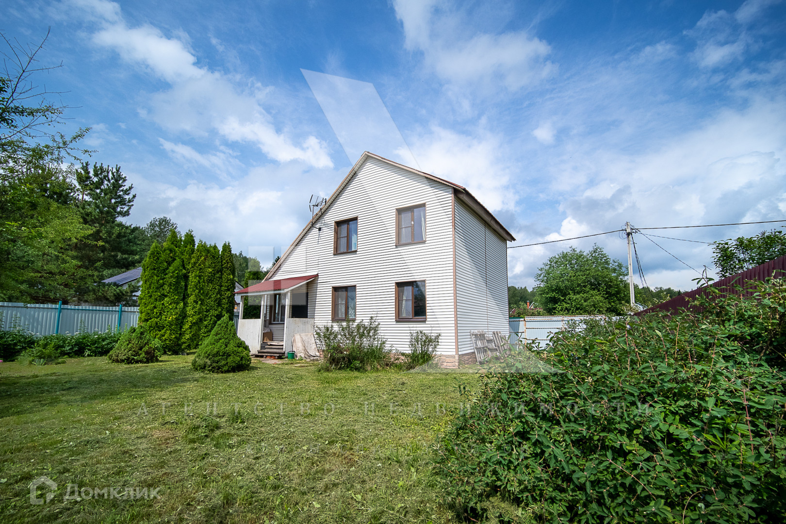 Дом построен из бруса и облицован сайдингом. Есть электричество мощностью 15 кВт и подведённая в дом вода. Дом подходит для круглогодичного проживания: при необходимости можно использовать печное отопление. На территории также имеется летняя кухня. В будущем планируется газификация.