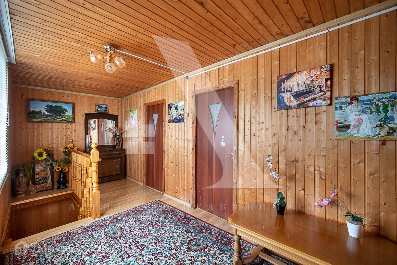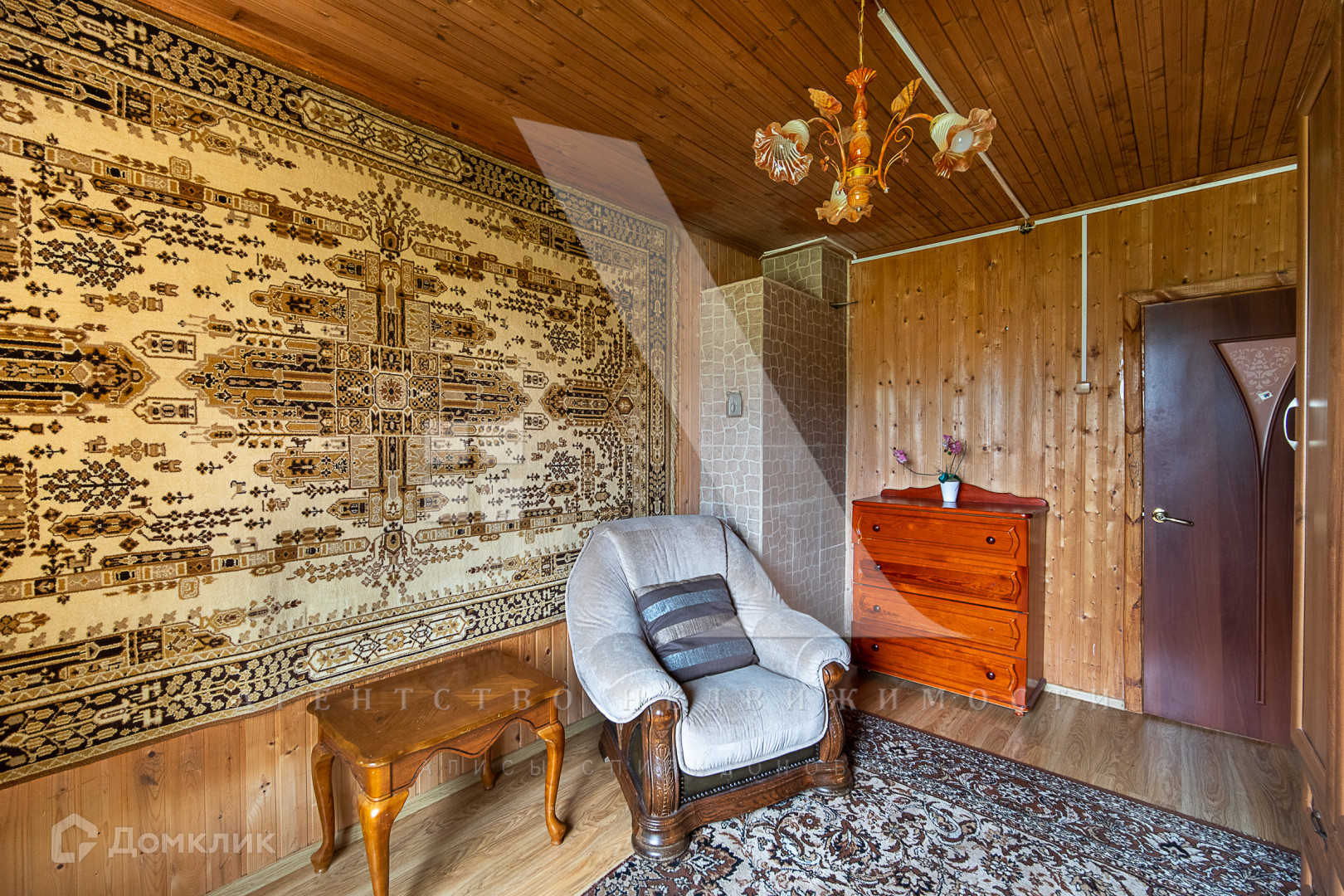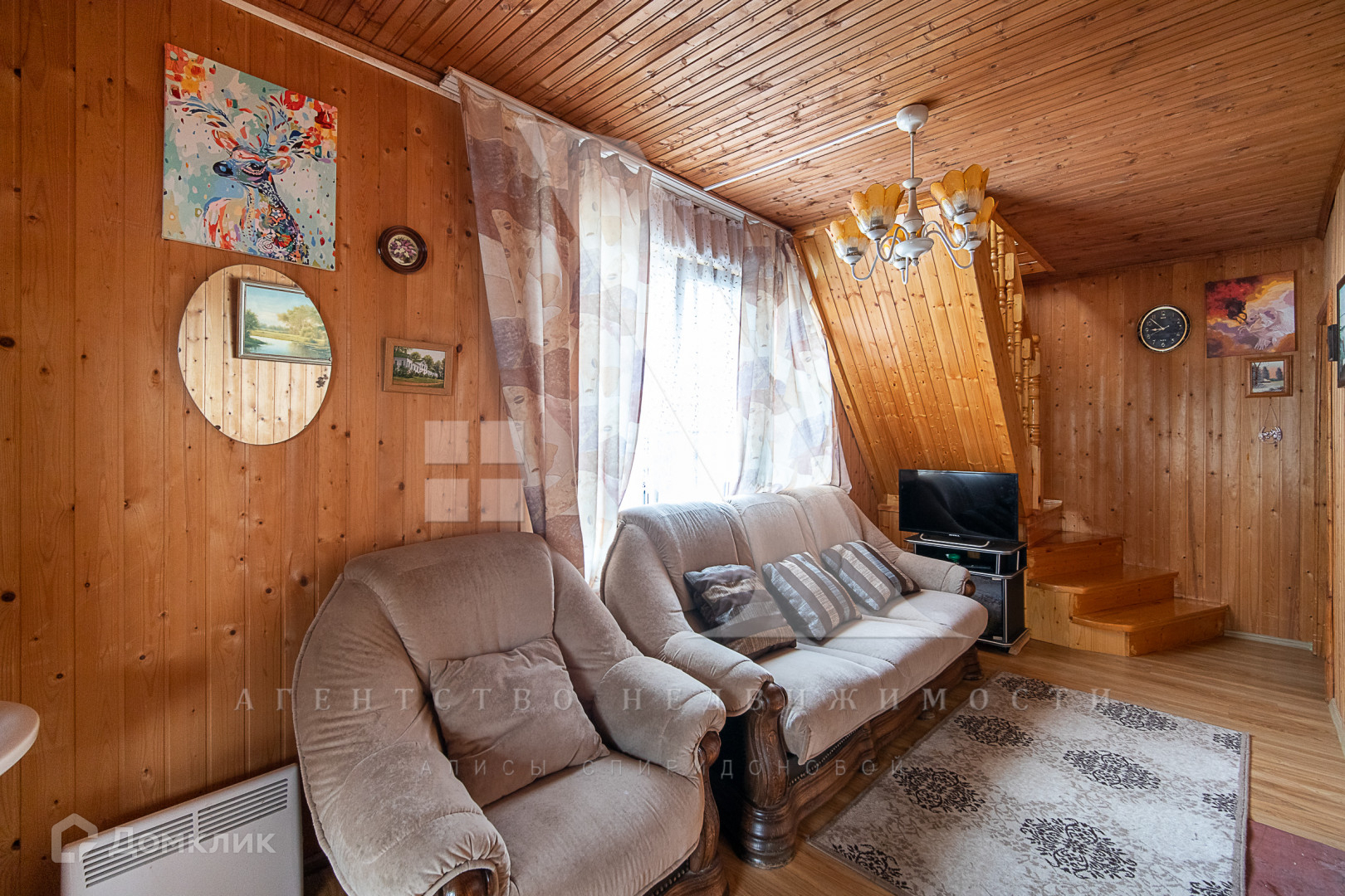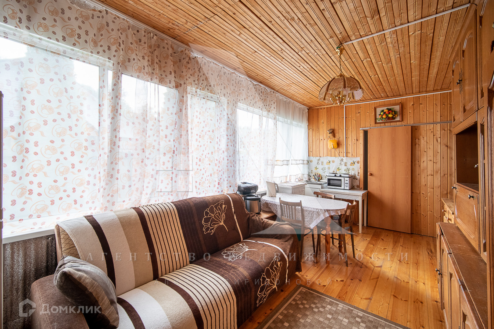 Дом построен из бруса и облицован сайдингом. Есть электричество мощностью 15 кВт и подведённая в дом вода. Дом подходит для круглогодичного проживания: при необходимости можно использовать печное отопление. На территории также имеется летняя кухня. В будущем планируется газификация.