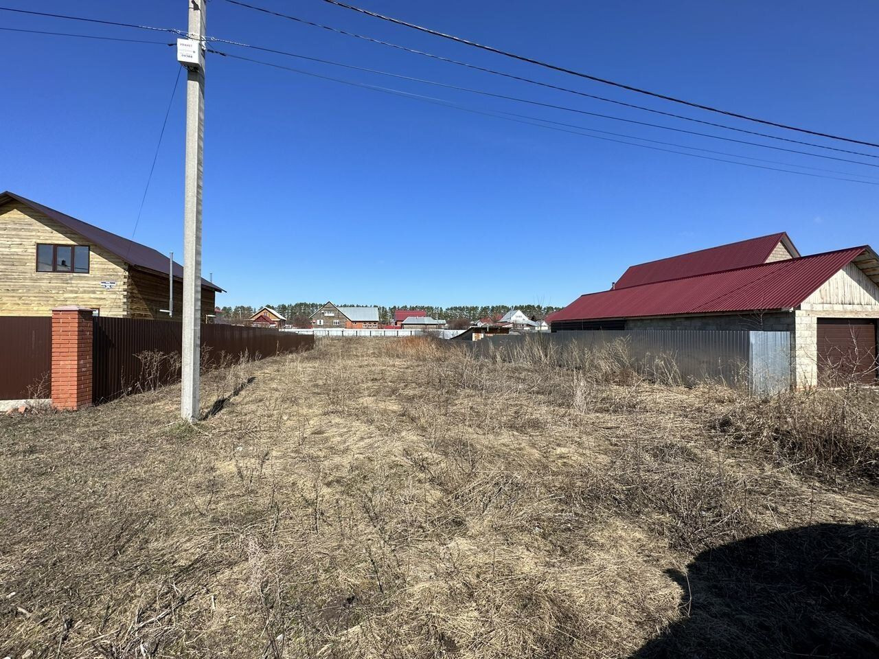 Участок ровный без ям и бугров. Электрический столб рядом с участком.