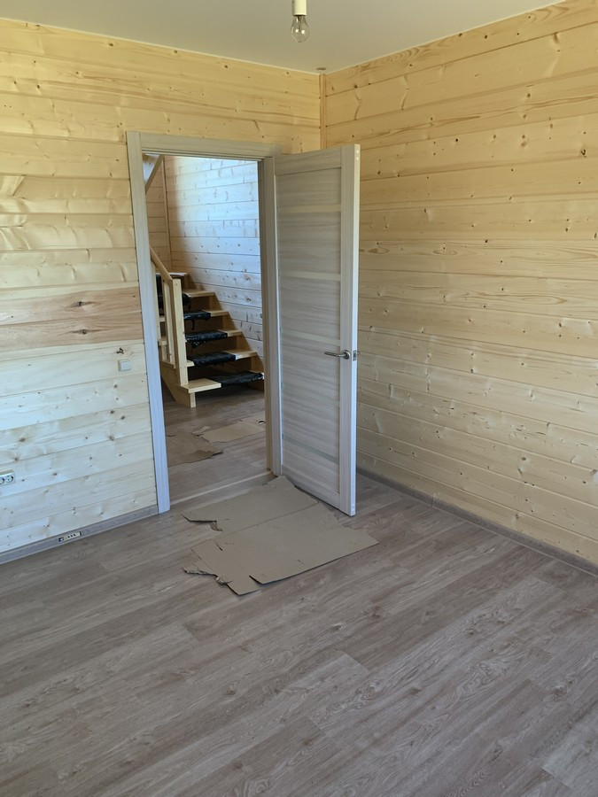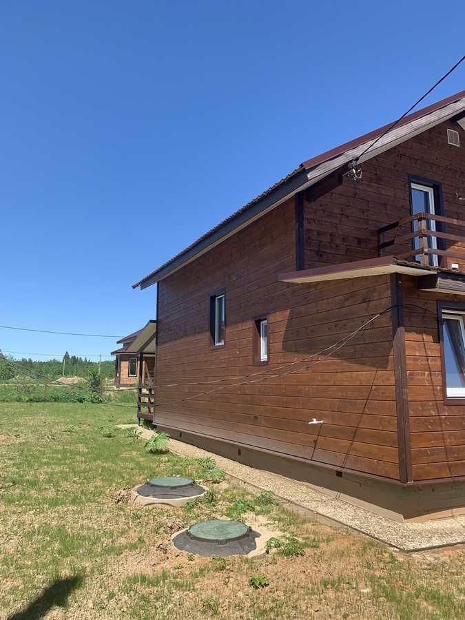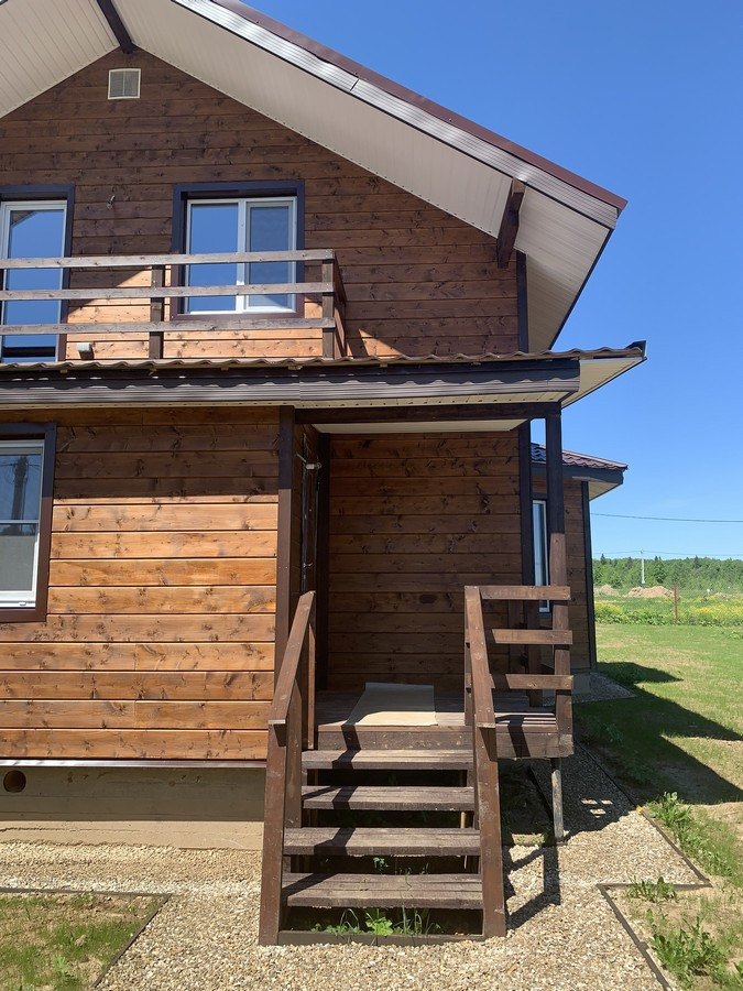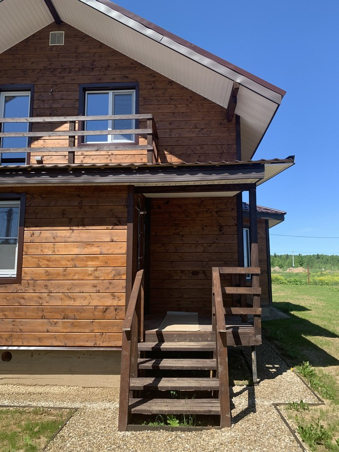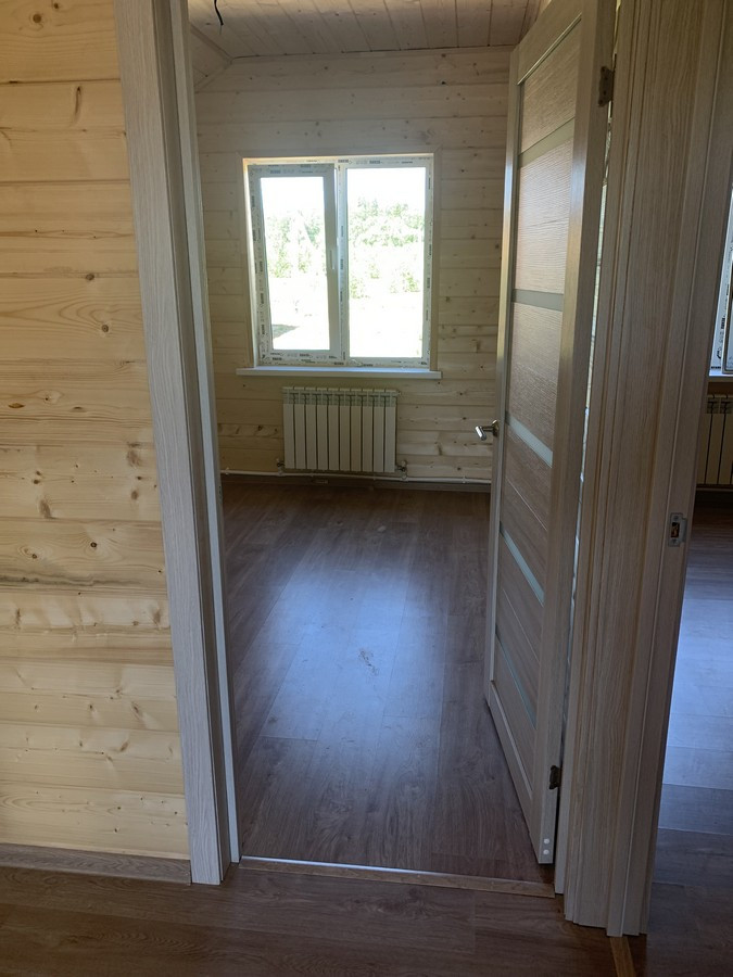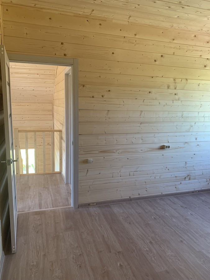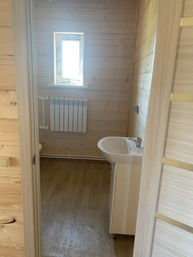 На 1 этаже - холл, большая кухня - гостиная, сан.узел, котельная, жилая комната. На втором этаже - три спальни , холл. Вся новая электрика и сантехника. Окна - ПВХ. В доме свет, вода (скважина), отопление, септик . Участок 9 кв.м. прилегает к лесу. Огорожен проф. листом по периметру. Отличный круглогодичный подъезд. Приличные соседи. Документы готовы. Соседи в поселке (полностью построен) проживают круглогодично, на протяжении многих лет. В охраняемом поселке: детская площадка.